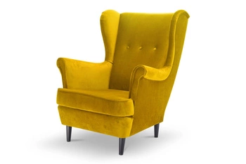 Fotel jednoosobowy wypoczynkowy Uszak żółty w stylu skandynawskim do salonu.