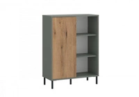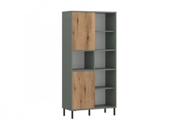 Witryna nowoczesna przeszklona z półkami do salonu w stylu skandynawskim Grano