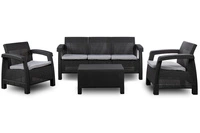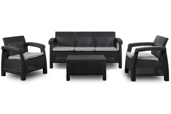 Zestaw mebli ogrodowych sofa trzyosobowa z fotelami i stolikiem technorattan