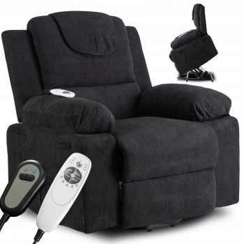 Fotel elektryczny rozkładany z funkcją wstawania i masażu czarny Fenix