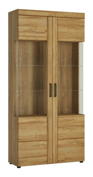 Witryna wysoka podświetlana z półkami do salonu Trondheim Forte