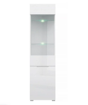 Witryna wysoka podświetlana do salonu biała Yolk 1D1W Mebel Bos