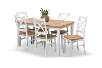 Zestaw stół rozkładany prostokątny z 6 krzesłami Gressan biały dąb craft