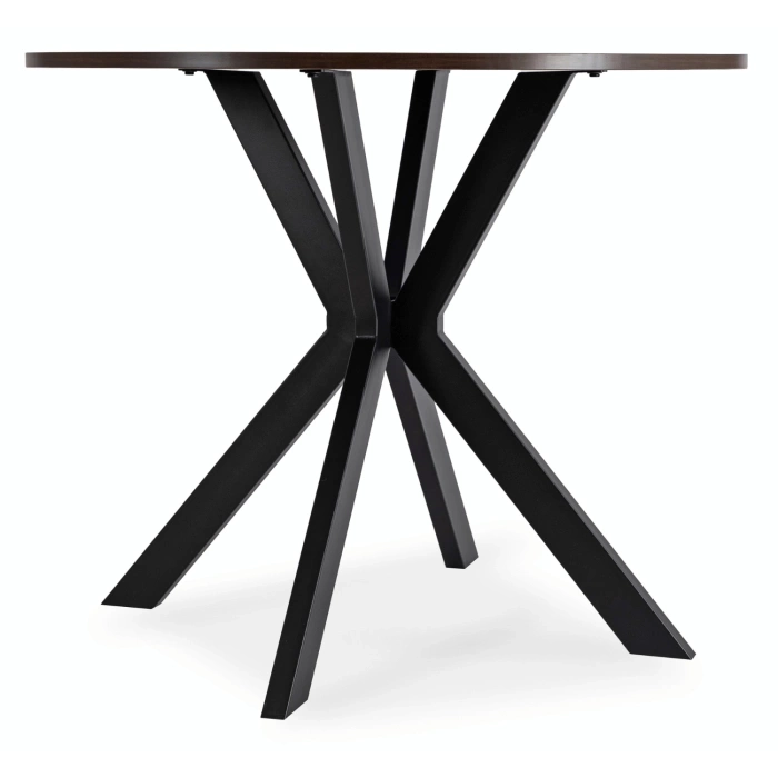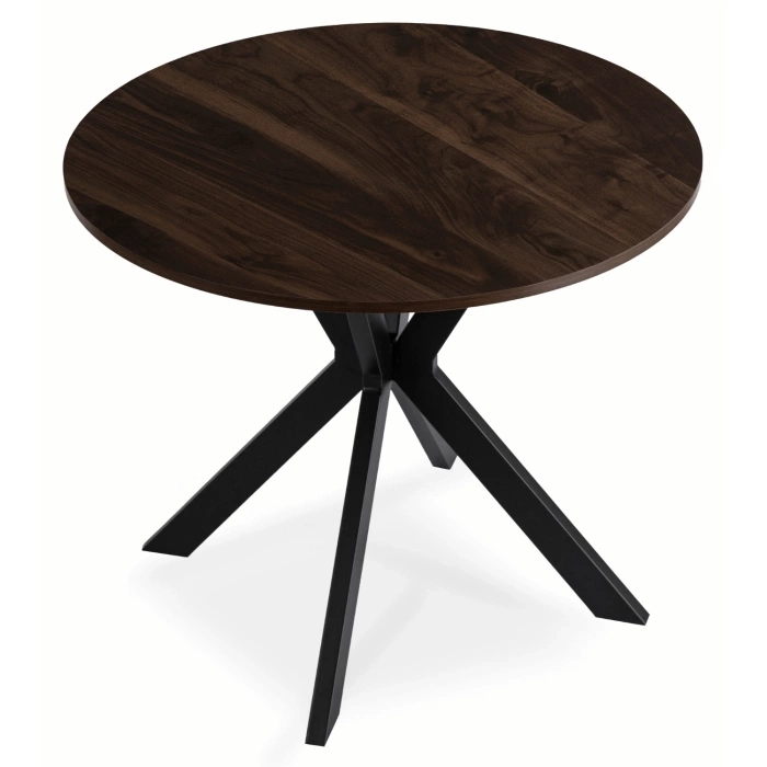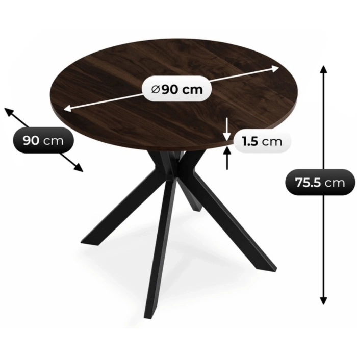 - Nowoczesny stół Lauren o średnicy 90 cm łączy dekor orzecha z czarną, metalową podstawą. Idealny do jadalni lub kuchni w stylu industrialnym i skandynawskim. Blat z trwałego MDF, stabilna konstrukcja, wysokość 75,5 cm. Nie zajmuje dużo mi