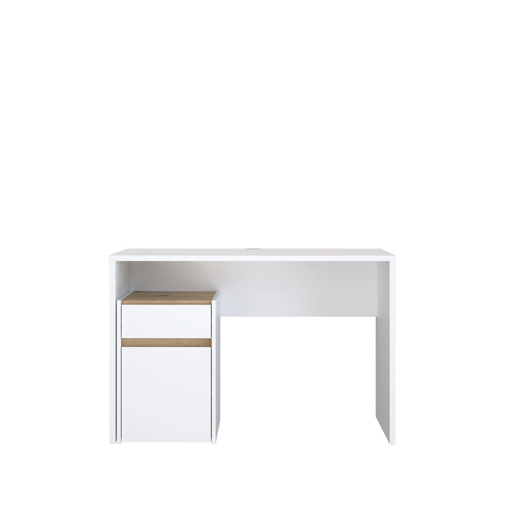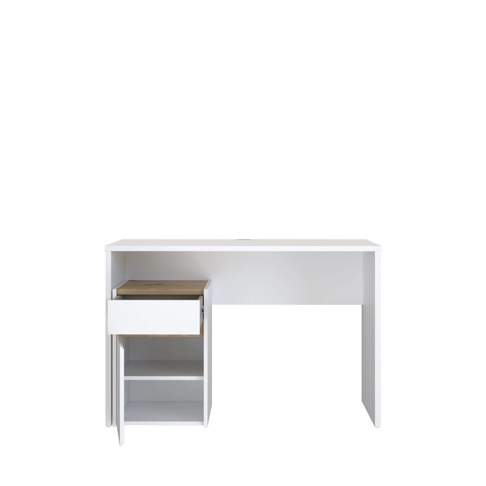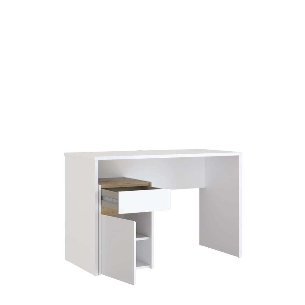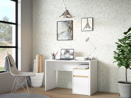 Biurko MODULTRICK to funkcjonalny i praktyczny mebel, który świetnie sprawdzi się zarówno w pokoju młodzieżowym, jak i w domowym biurze. Dzięki swoim kompaktowym wymiarom, można je łatwo umieścić nawet w niewielkiej przestrzeni przeznaczonej do nauki i pracy, na przykład w sypialni czy salonie. Jego przestronny blat zapewnia wystarczająco dużo miejsca na laptopa, niezbędne narzędzia oraz akcesoria biurowe, takie jak lampka czy organizer na długopisy. Dodatkowo, biurko posiada praktyczną szafkę i szufladę na przechowywanie drobnych przedmiotów. Istnieje także możliwość uzupełnienia go o nadstawkę w kolorze białym lub w dekorze Dąb Artisan.