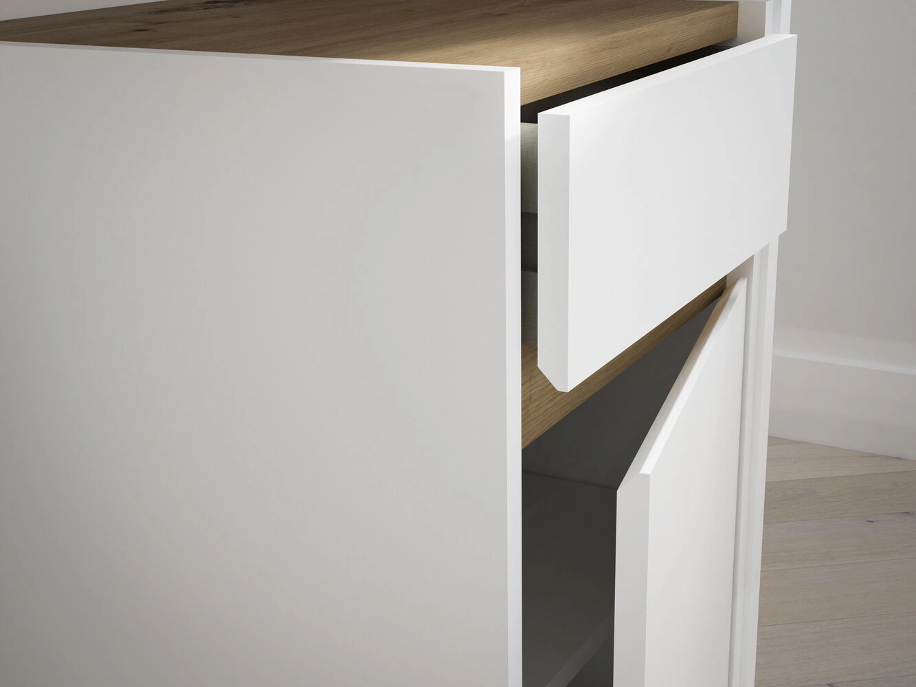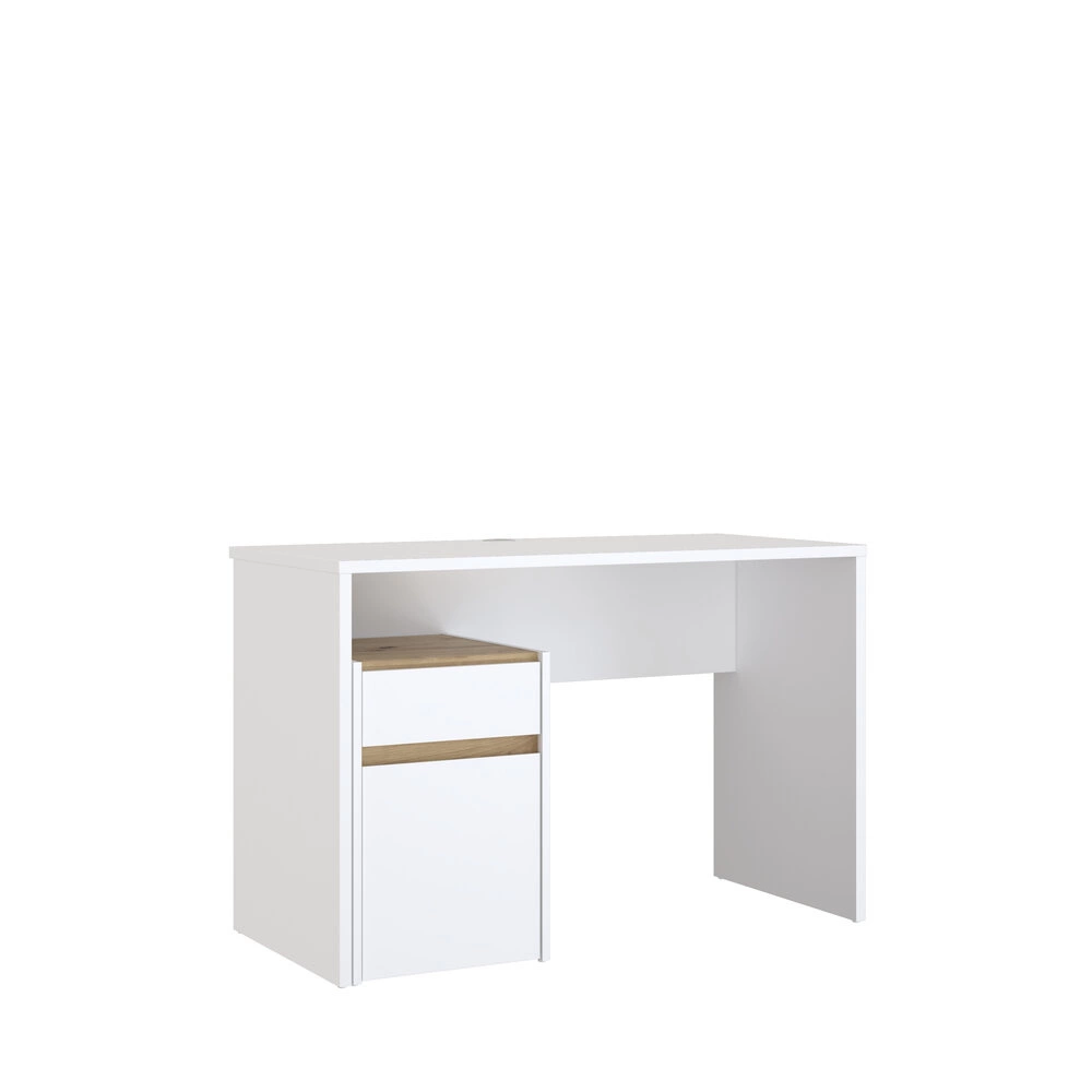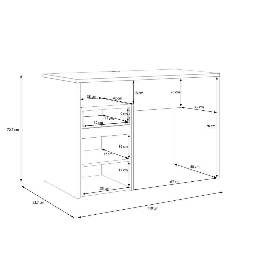 Biurko MODULTRICK to funkcjonalny i praktyczny mebel, który świetnie sprawdzi się zarówno w pokoju młodzieżowym, jak i w domowym biurze. Dzięki swoim kompaktowym wymiarom, można je łatwo umieścić nawet w niewielkiej przestrzeni przeznaczonej do nauki i pracy, na przykład w sypialni czy salonie. Jego przestronny blat zapewnia wystarczająco dużo miejsca na laptopa, niezbędne narzędzia oraz akcesoria biurowe, takie jak lampka czy organizer na długopisy. Dodatkowo, biurko posiada praktyczną szafkę i szufladę na przechowywanie drobnych przedmiotów. Istnieje także możliwość uzupełnienia go o nadstawkę w kolorze białym lub w dekorze Dąb Artisan.