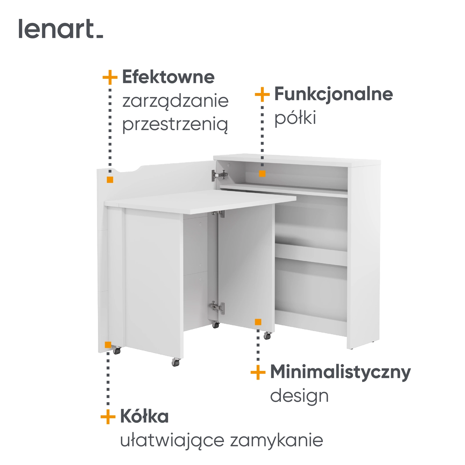 Nowoczesne i funkcjonalne – to biurko zostało zaprojektowane z myślą o małych przestrzeniach, w których każdy centymetr ma znaczenie. Dzięki innowacyjnej, rozsuwanej konstrukcji, mebel łączy w sobie funkcjonalność biurka i estetykę komody, stając się idealnym rozwiązaniem do pokoju dziecka, nastolatka, kawalerki, gabinetu czy nawet mieszkania seniora.