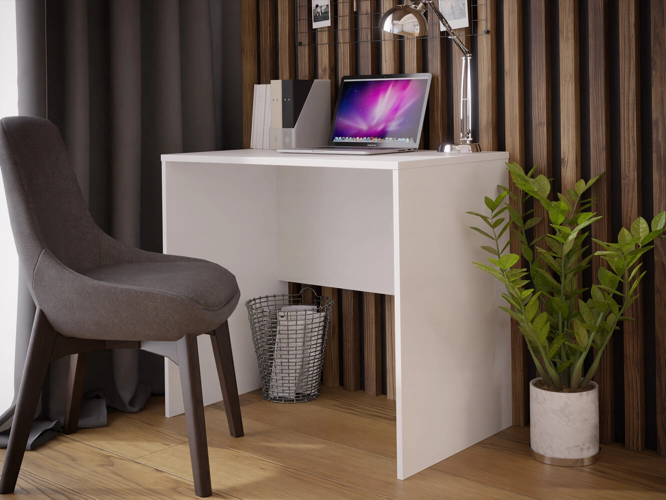 • Stylowe i kompaktowe biurko o prostym designie, idealne do małych przestrzeni. Zapewnia wygodną powierzchnię do pracy, doskonale komponując się z nowoczesnym wnętrzem.