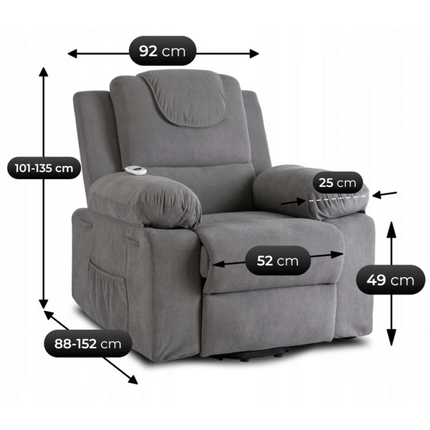 Fotel elektryczny rozkładany z funkcją wstawania i masażu szary Fenix