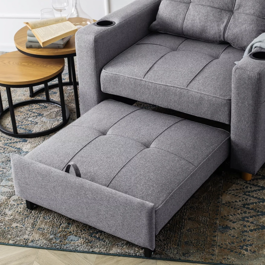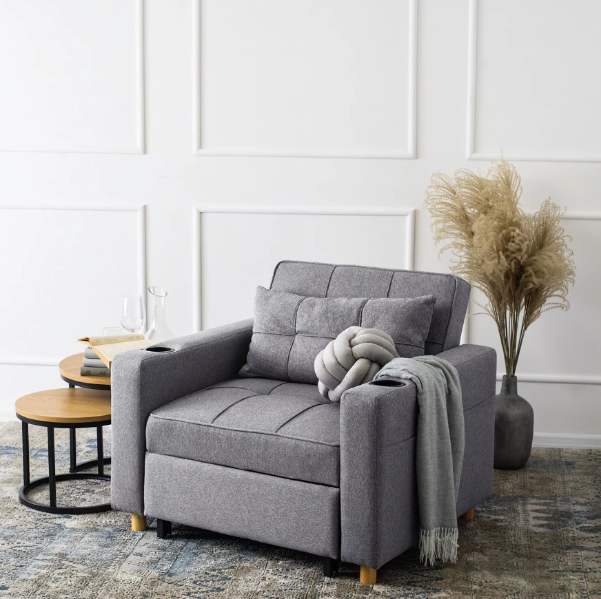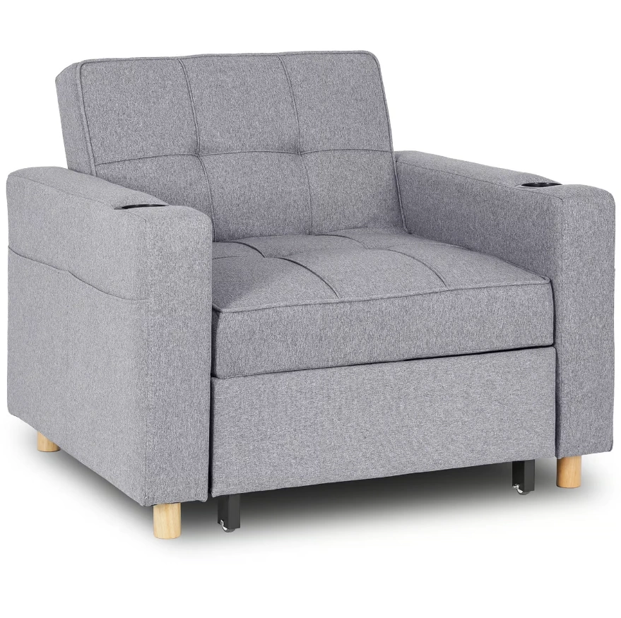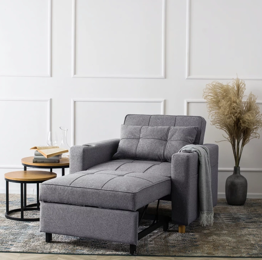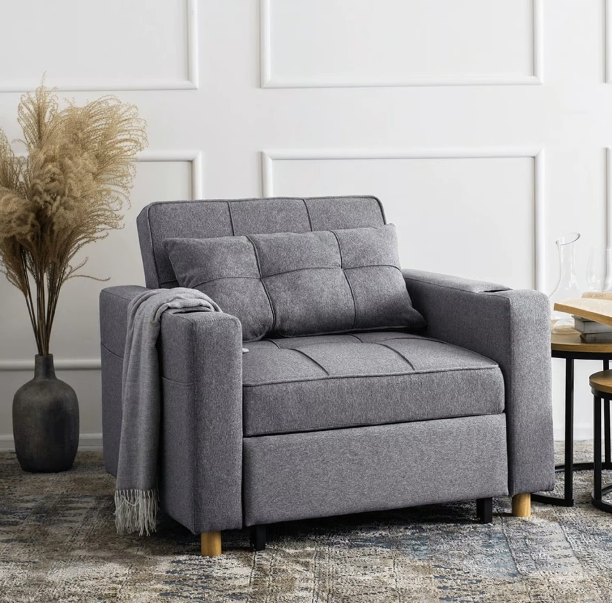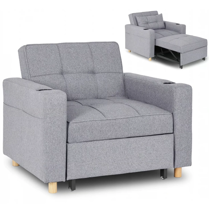• Wielofunkcyjność: Fotel, który w kilka chwil zamienia się w wygodne miejsce do spania – idealny do mieszkań z ograniczoną przestrzenią.