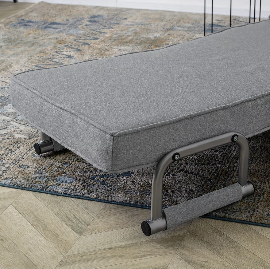 - Komfortowe detale: Miękka tkanina, wbudowany podnóżek, wygodne podłokietniki i zagłówek sprawiają, że fotel jest idealnym miejscem do odpoczynku.