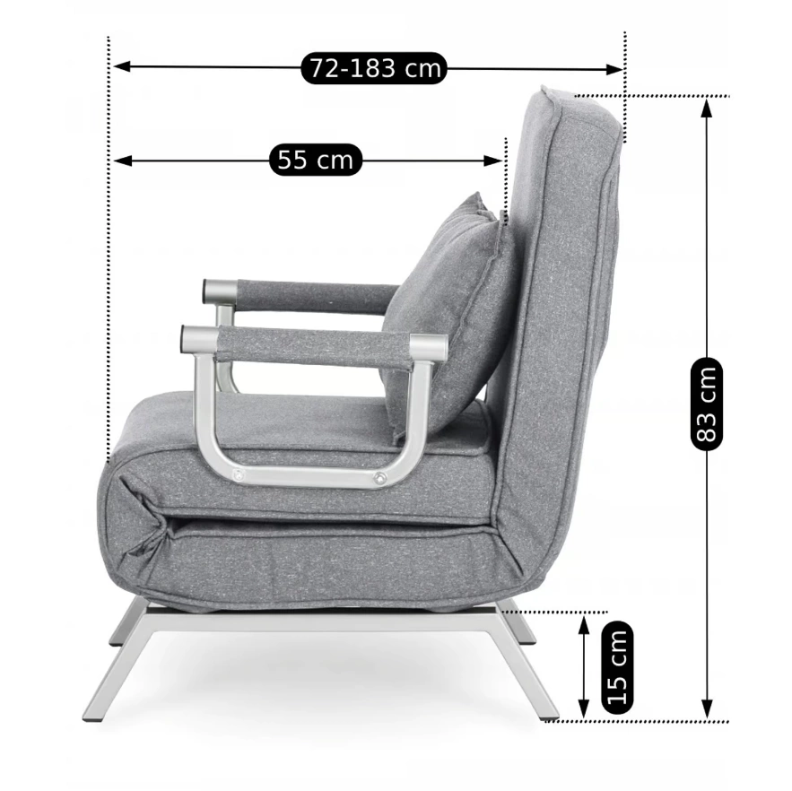 Nowoczesny fotel rozkładany wypoczynkowy BART – Szary