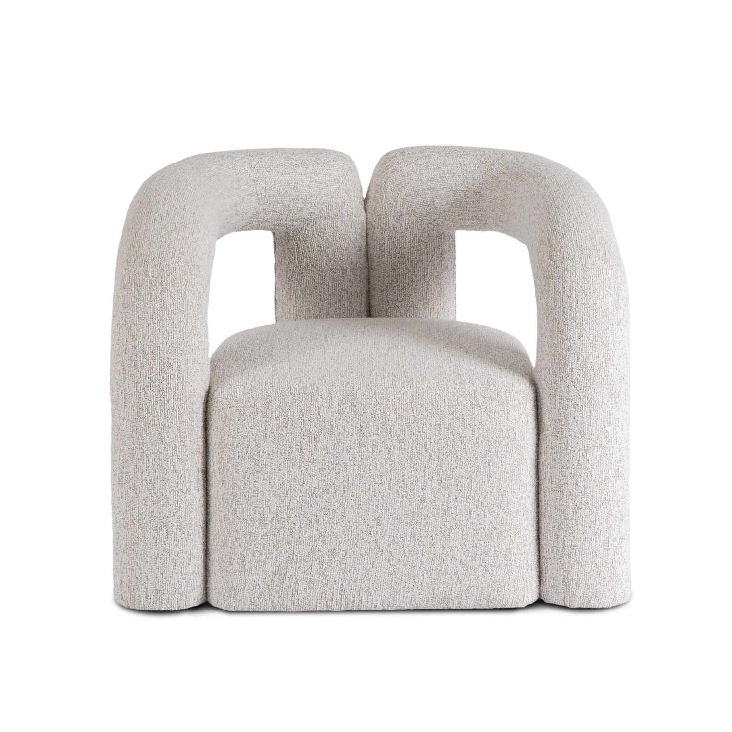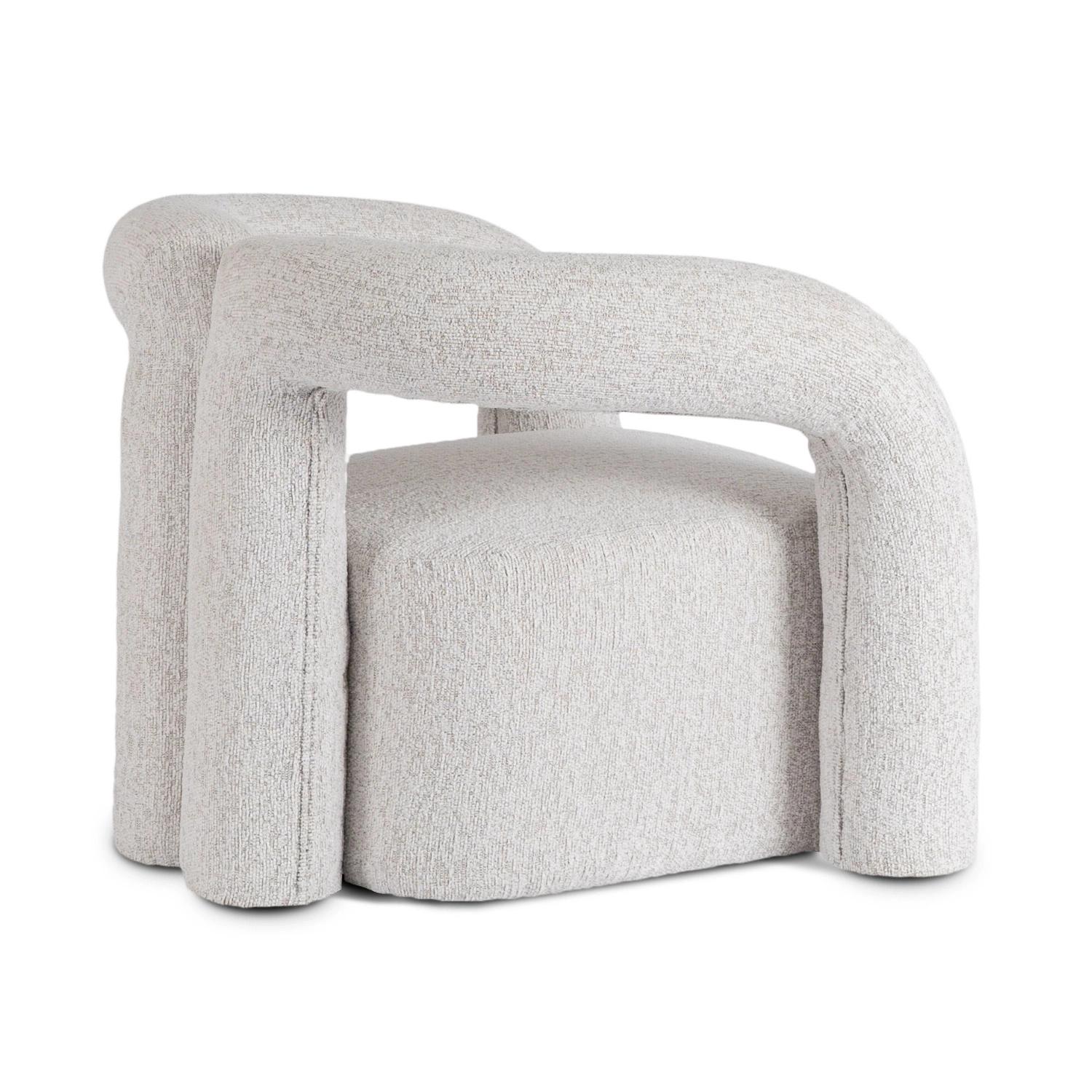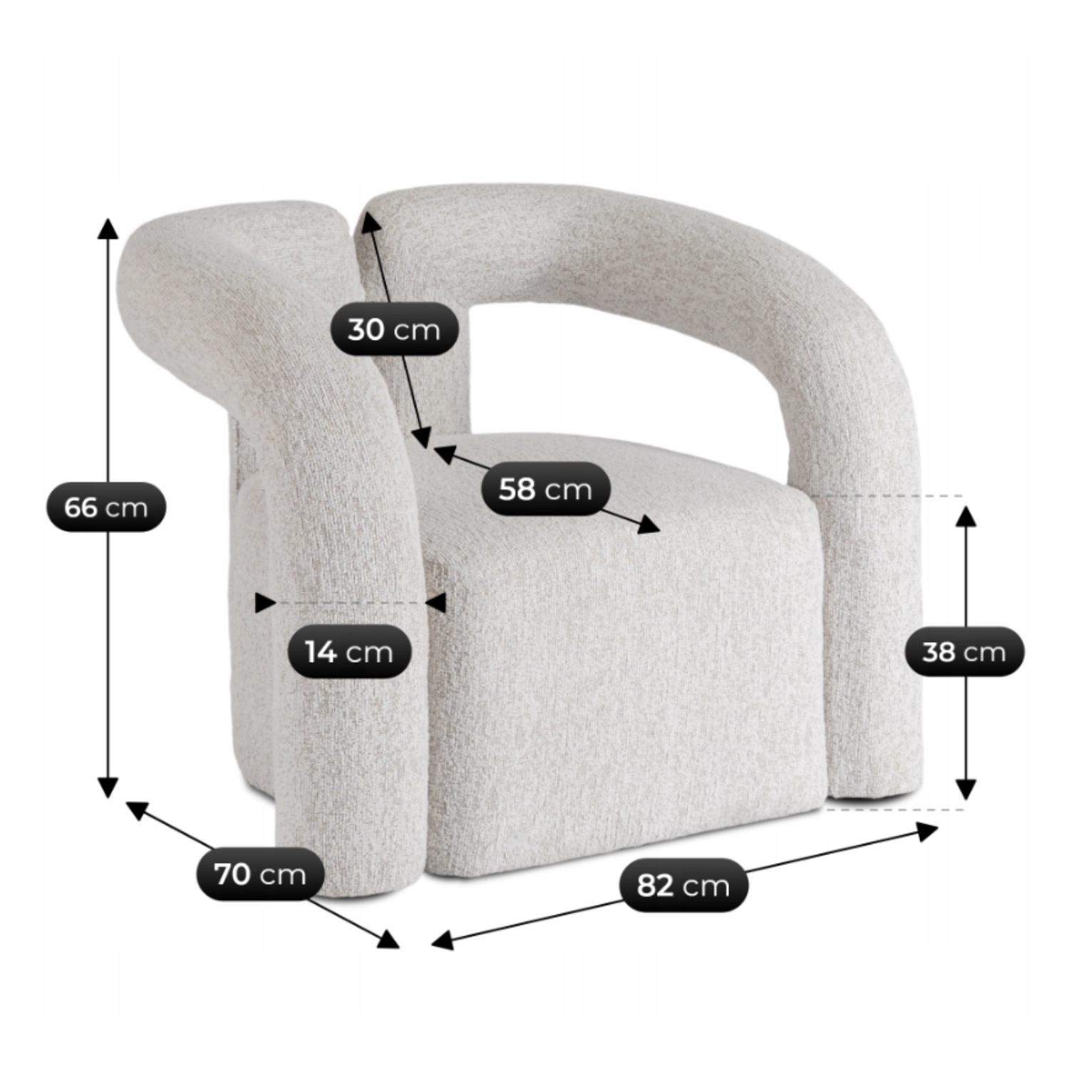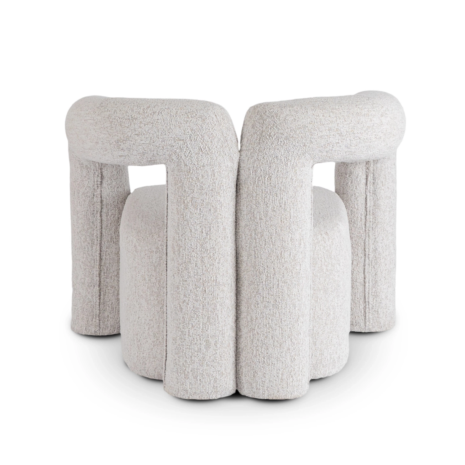 Fotel Brazil to połączenie elegancji, komfortu i oryginalnego designu. Jego wyjątkowa forma i miękka tkanina boucle sprawiają, że stanie się nie tylko miejscem do odpoczynku, ale także ozdobą salonu, sypialni czy biura.