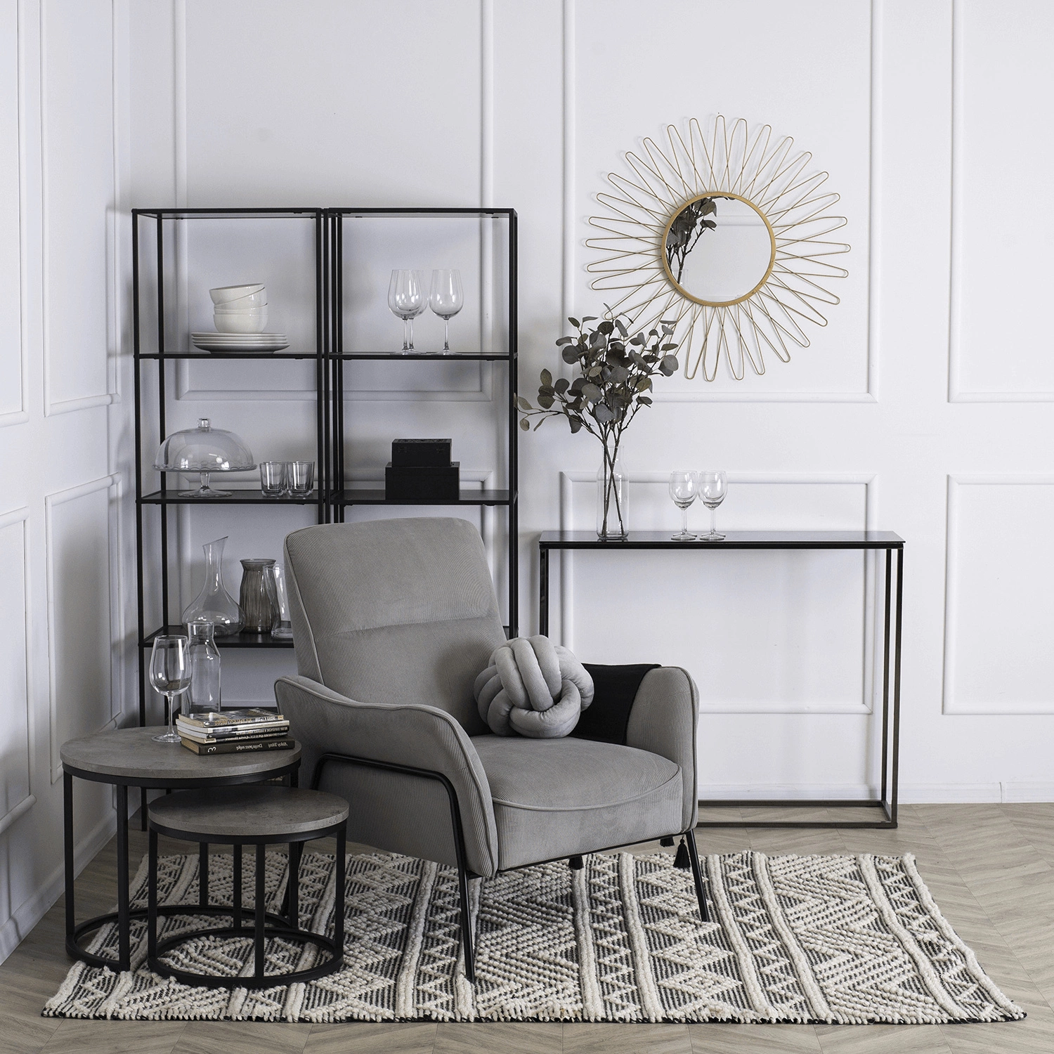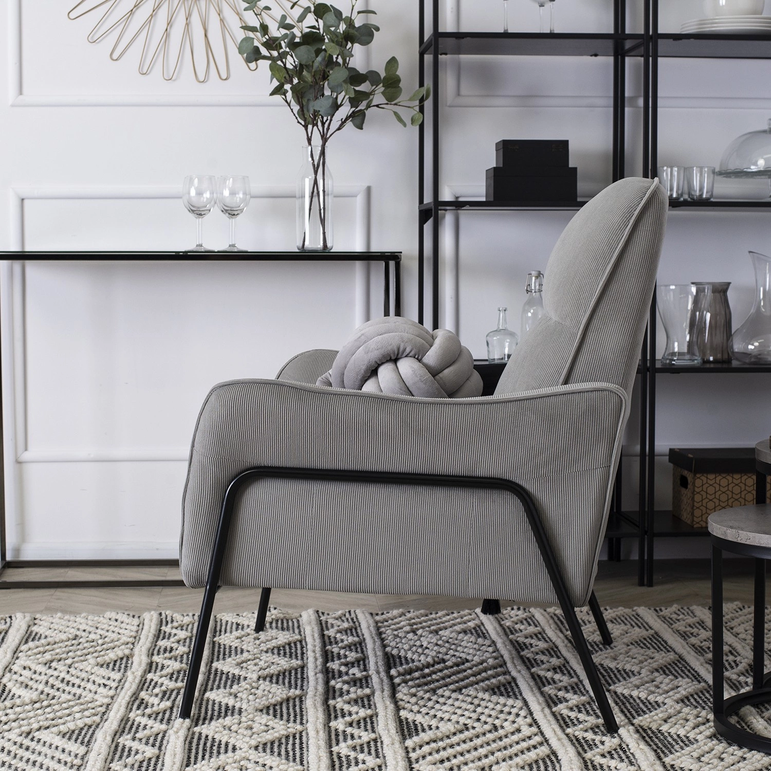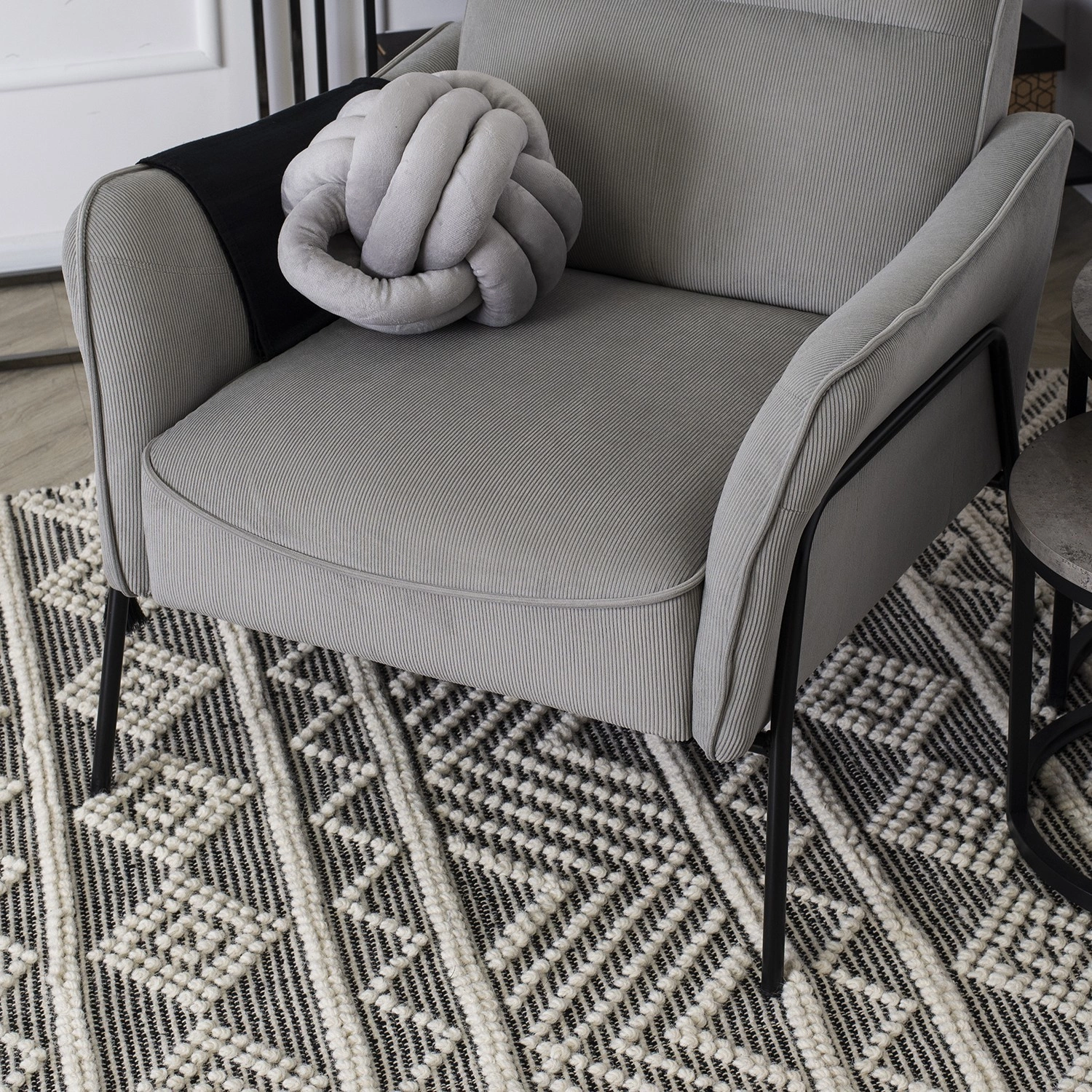 Szarość to kolor, który nigdy nie wychodzi z mody i pasuje do różnych aranżacji wnętrz. Szary fotel jednoosobowy Alberto doskonale sprawdzi się w nowoczesnych, skandynawskich i loftowych wnętrzach, podkreślając ich minimalistyczny, ale elegancki charakter. Czarne, metalowe nogi dodają mu lekkości, a subtelnie profilowane podłokietniki zapewniają jeszcze większy komfort użytkowania.