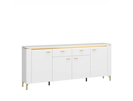 Komoda duża czterodrzwiowa na złotych nóżkach z szufladami do przestronnego wnętrza
