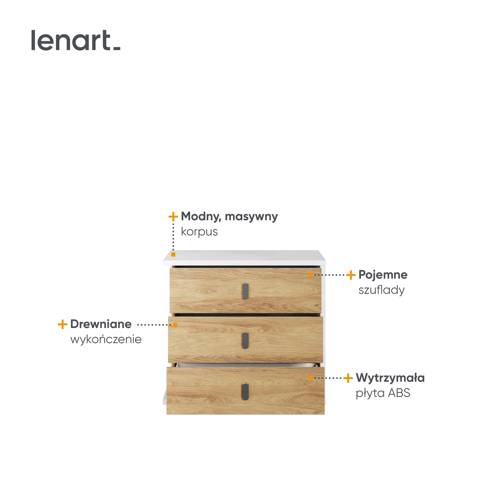 Szukasz mebla, który połączy elegancki wygląd z praktycznym zastosowaniem? Ta stylowa komoda z trzema pojemnymi szufladami to doskonałe rozwiązanie do nowoczesnych wnętrz, w tym szczególnie do pokoju młodzieżowego.