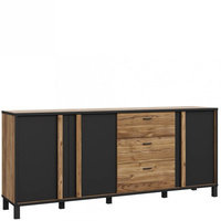 - Komoda loftowa Jakobina od Forte to stylowe połączenie ciepłego drewna z czarnym korpusem, idealna do nowoczesnych wnętrz. Praktyczne szuflady oferują dużo miejsca do przechowywania i porządku.