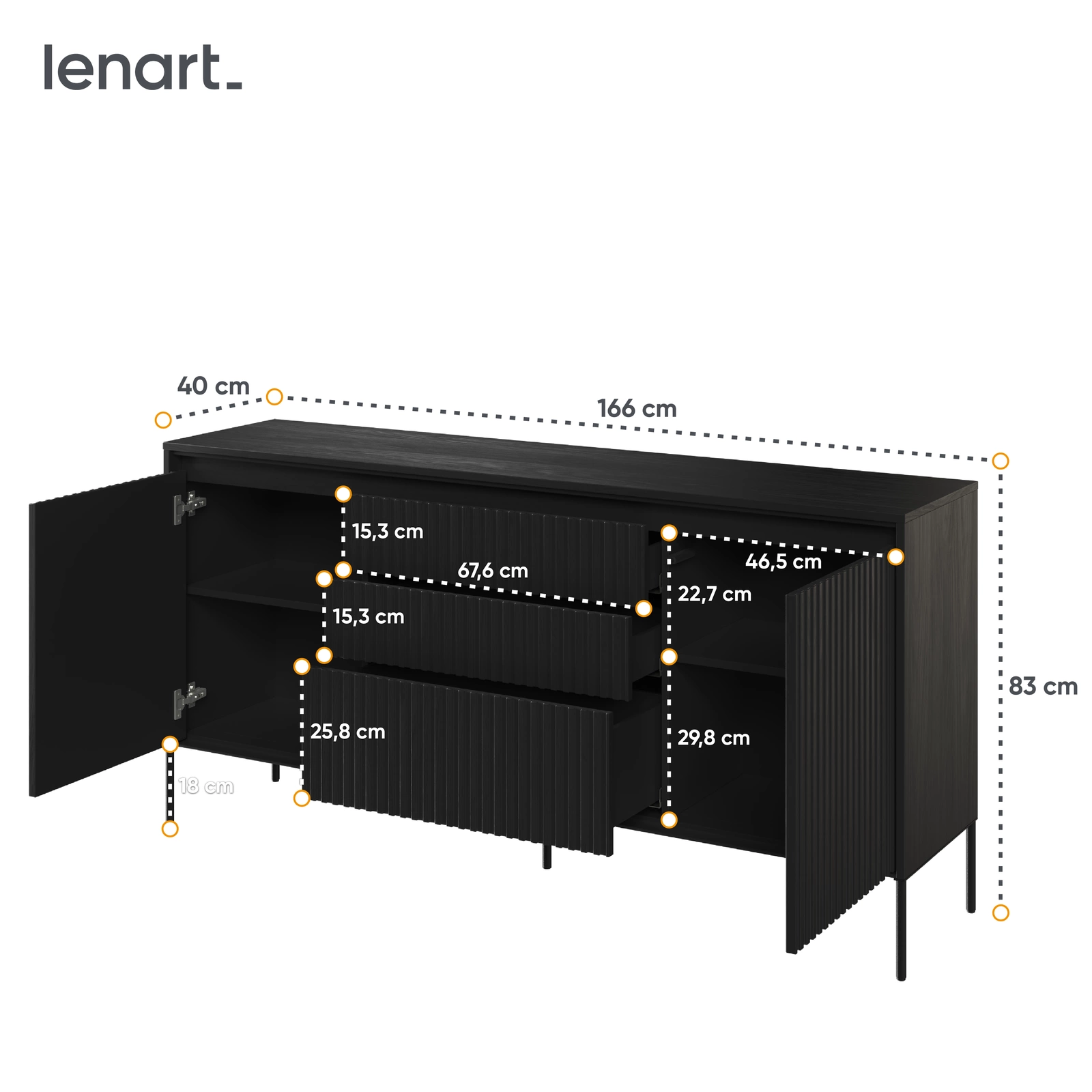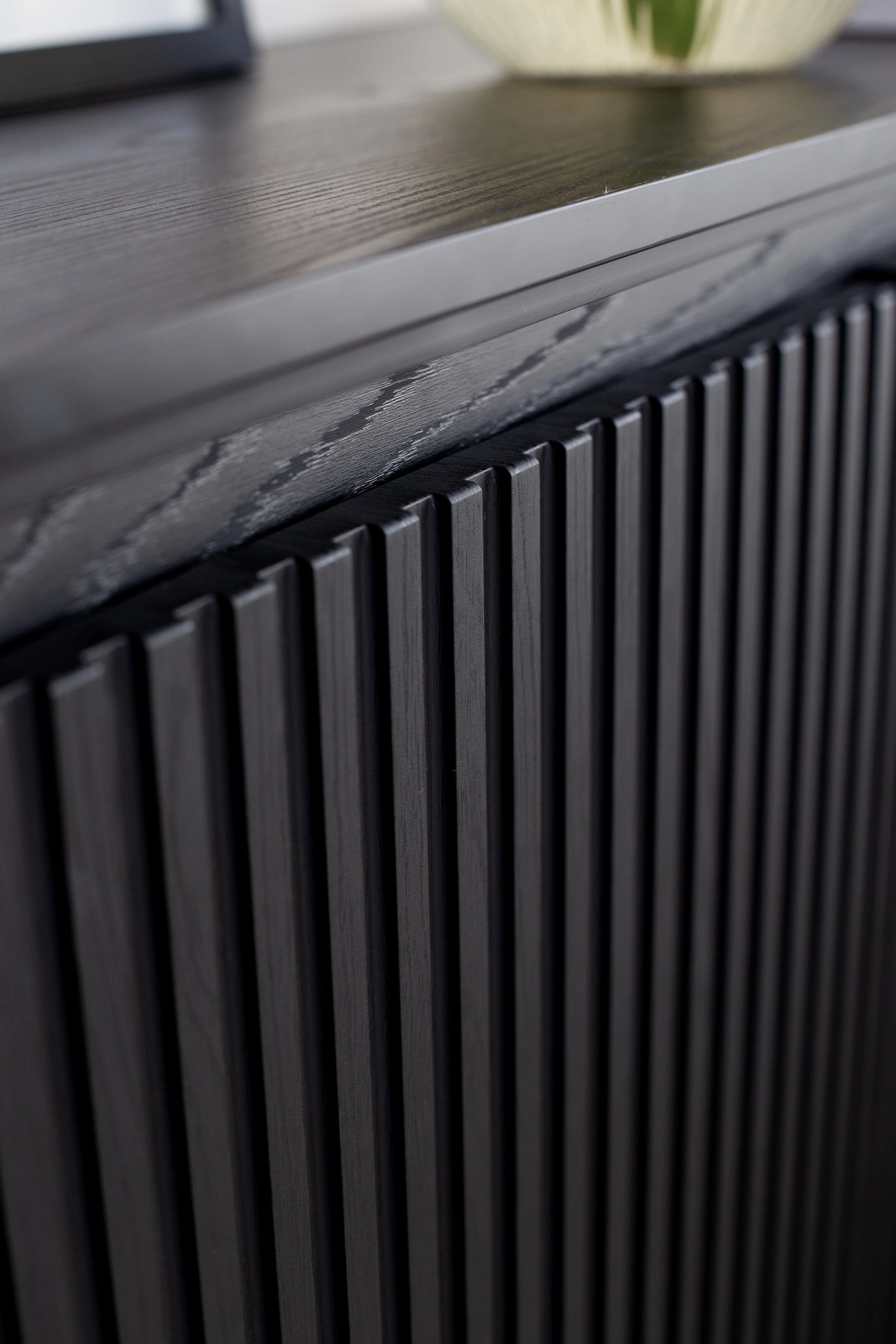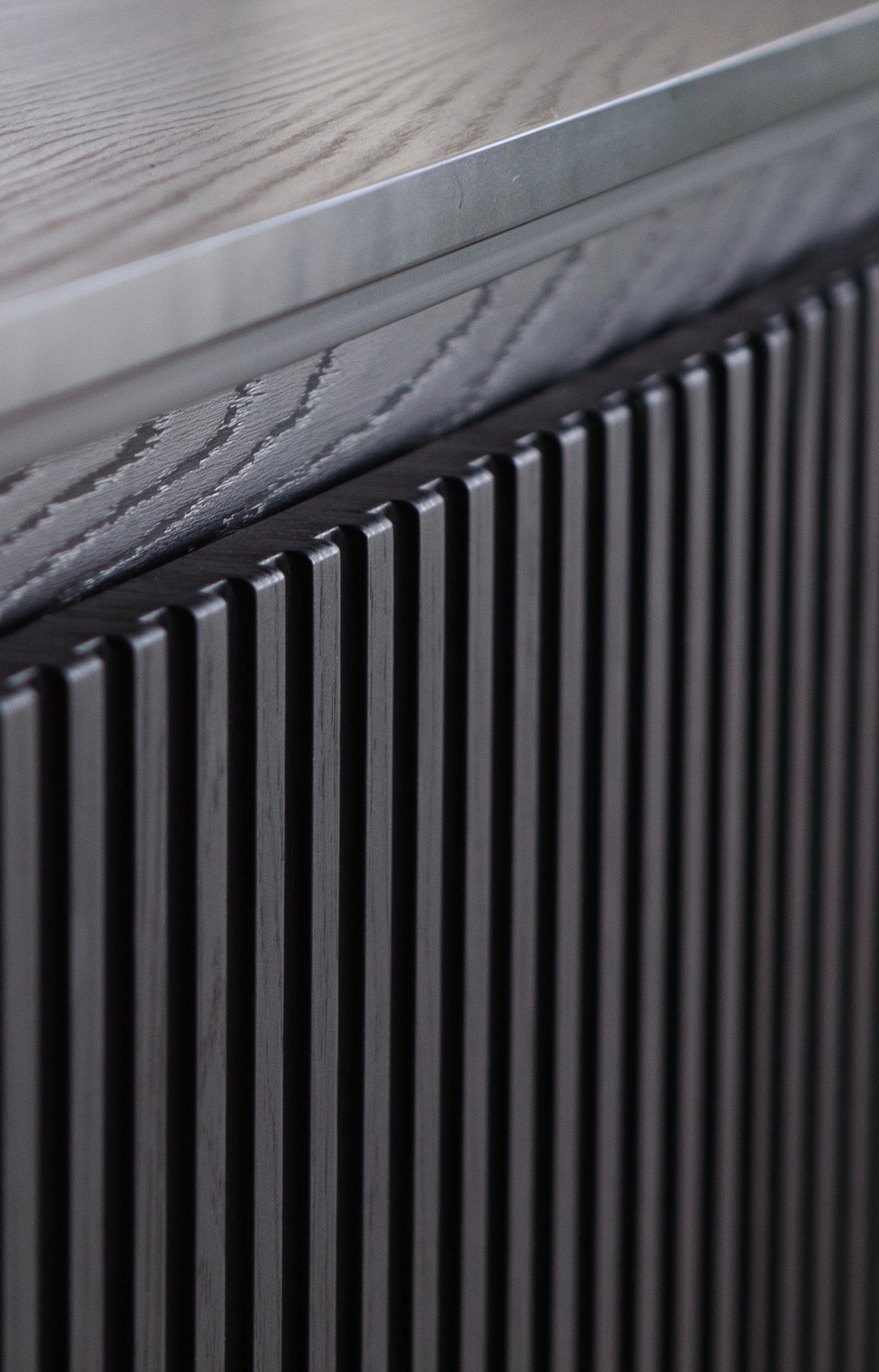 Fronty komody zdobią unikalne ryflowane powierzchnie, które dodają jej głębi i charakteru. Ten subtelny, ale wyrazisty detal sprawia, że mebel przyciąga wzrok już od pierwszego spojrzenia. Wykończenie w ciepłym odcieniu dębu artisan idealnie wpisuje się w nowoczesne, skandynawskie, loftowe, a nawet klasyczne aranżacje.