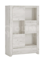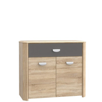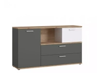 Komoda Twenty typ TWEK01 jest niezwykle funkcjonalnym, a zarazem efektownym meblem, którego styl pozwoli nadać pomieszczeniu efektu nowoczesnego dynamizmu. Ten asymetryczny mebel dba o pojemną strefę przechowywania, ukrytą przed wzrokiem osób postronnych oraz możliwość ekspozycji przedmiotów dekoracyjnych lub codziennego użytku. Komoda posiada dwie pojemne szuflady, osadzone na prowadnicach kulkowych. Pełen wysuw szuflad zapewnia ogromny komfort użytkowania, podobnie jak nowoczesne zawiasy samodomykające, zastosowane przy frontach drzwiowych. Za drzwiami komody powstaje kolejna, prywatna strefa przechowywania. Mebel, wykonany z płyty wiórowej, poddanej laminacji posiada nowocześnie prezentujące się uchwyty.
