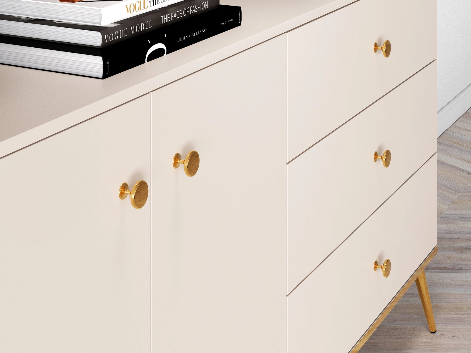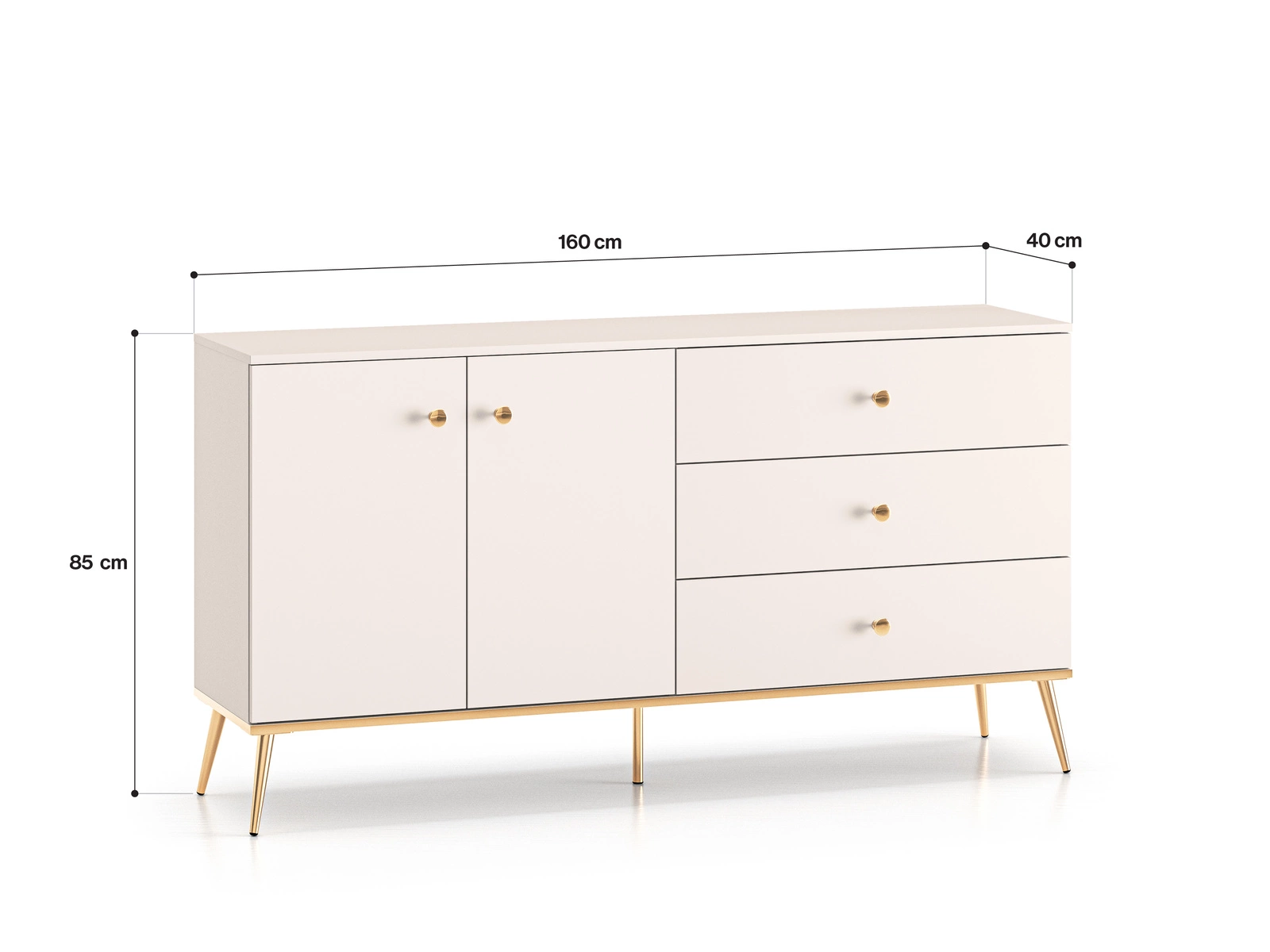 Wyjątkowy design – połączenie jasnej kolorystyki z subtelnymi, złotymi detalami nadaje meblowi luksusowy charakter.
