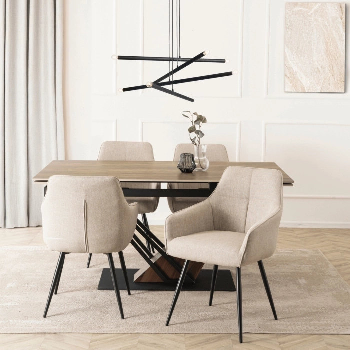 Krzesło Palma w eleganckim, beżowym kolorze to idealne połączenie nowoczesnego designu i codziennej funkcjonalności. Jego uniwersalna forma i neutralna kolorystyka sprawdzą się zarówno w jadalni, salonie, jak i biurze.