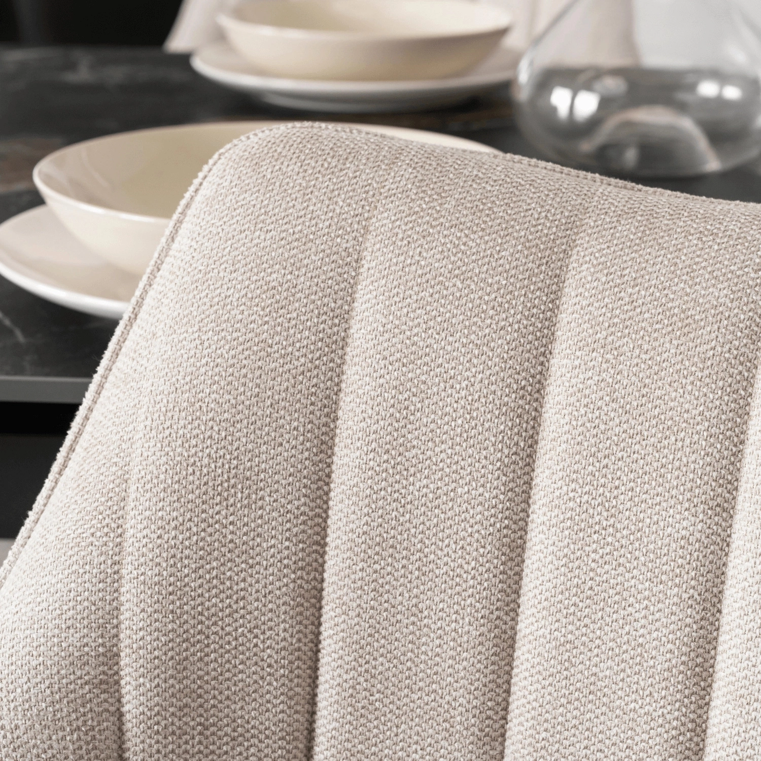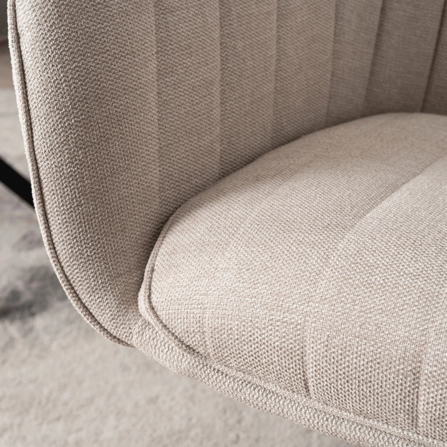 Krzesło wyróżnia się minimalistycznym, nowoczesnym designem z delikatną nutą elegancji, dzięki czemu pasuje zarówno do wnętrz nowoczesnych, jak i tych bardziej klasycznych. Miękka tkanina oraz podłokietniki zapewniają wyjątkowy komfort podczas długiego siedzenia. Solidna czarna metalowa podstawa nie tylko stabilizuje krzesło, ale także nadaje mu surowy, modny charakter.