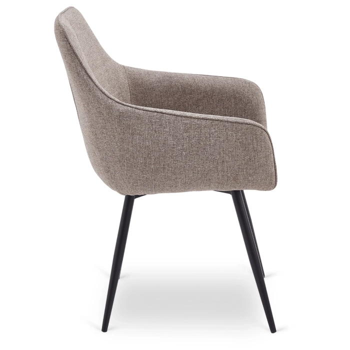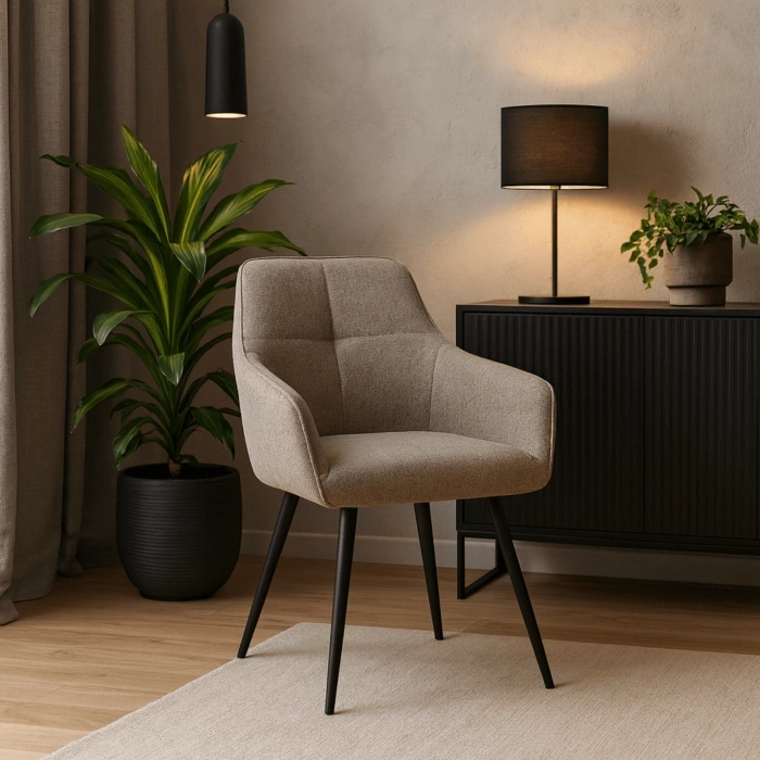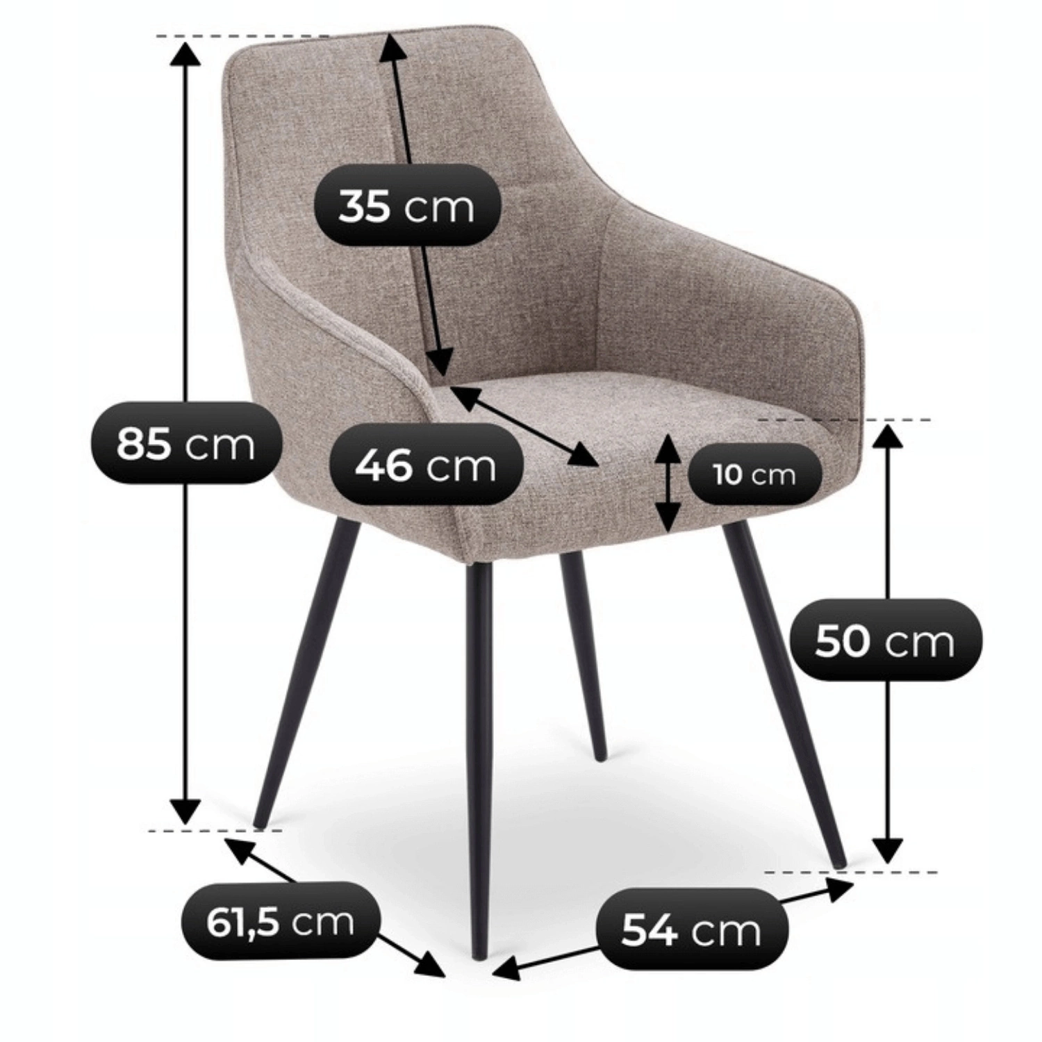 Wyprofilowane oparcie, miękkie siedzisko i zintegrowane podłokietniki gwarantują wygodę, nawet przy dłuższym użytkowaniu. Stabilna, metalowa konstrukcja zapewnia trwałość i bezpieczeństwo, a przemyślane proporcje sprawiają, że krzesło świetnie dopasuje się do większości stołów.