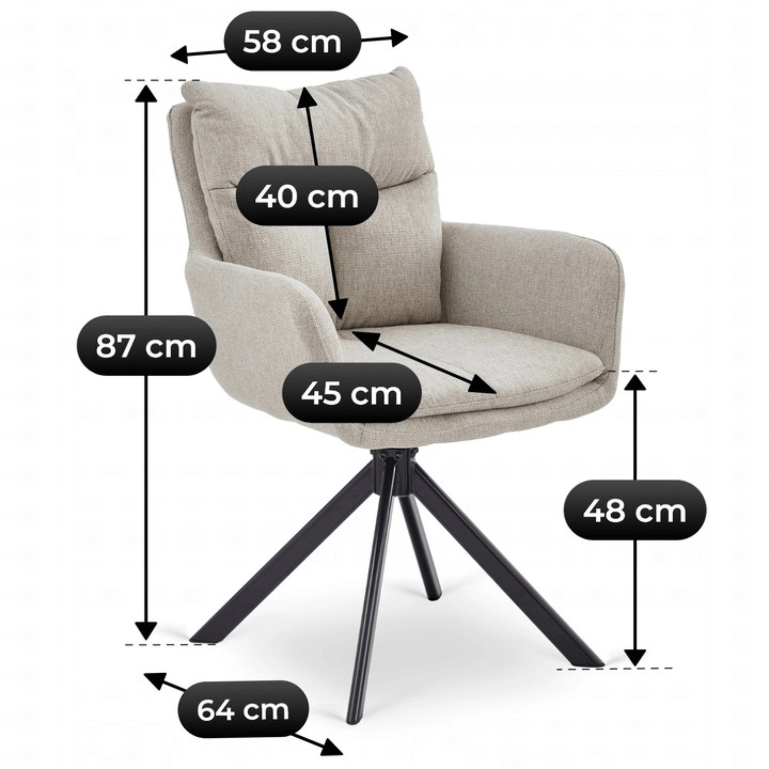 • Krzesło obrotowe Paul w beżowej tkaninie łączy nowoczesny design z wygodą. Ergonomiczne siedzisko, podłokietniki i obrót 360° sprawiają, że to idealny mebel do salonu, biura i jadalni.