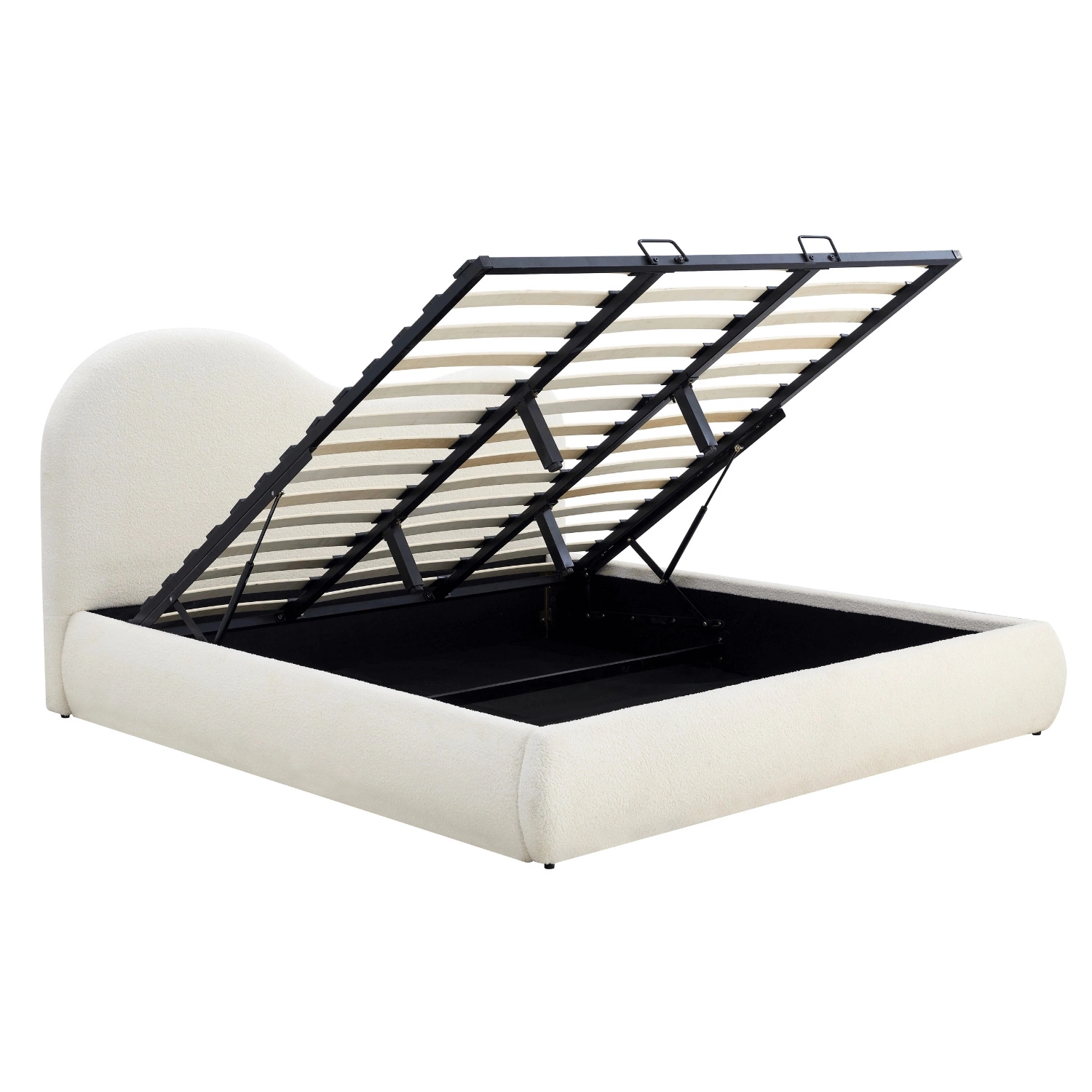 Łóżko tapicerowane z podnoszonym stelażem TALINN 180 × 200 – kremowe bouclé