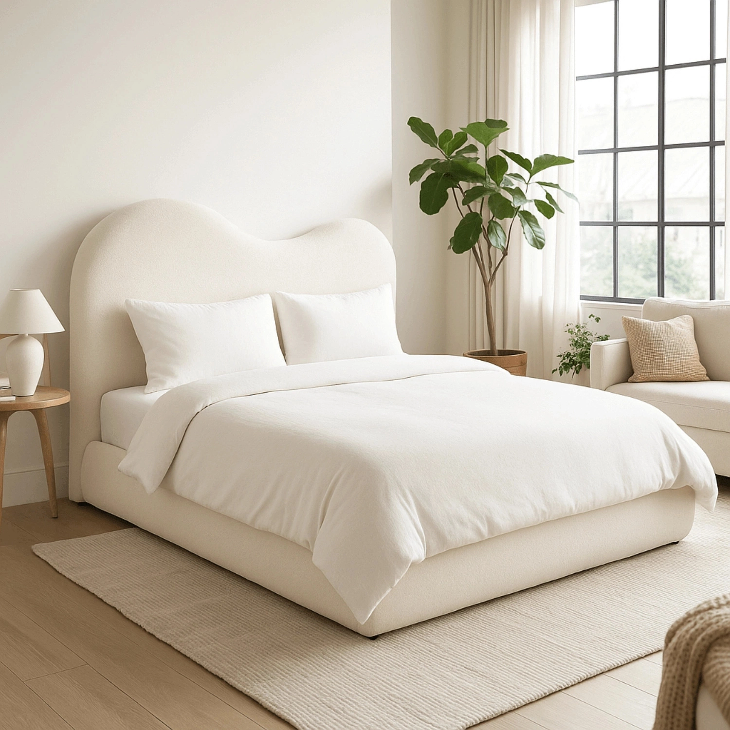 Łóżko Talinn to idealne połączenie elegancji, funkcjonalności i codziennej wygody. Jego subtelny, kremowy odcień oraz modne wykończenie tkaniną bouclé sprawiają, że świetnie odnajduje się zarówno w nowoczesnych, jak i klasycznych aranżacjach sypialni. To mebel stworzony dla osób, które cenią sobie przestrzeń, komfort i stylowy design.