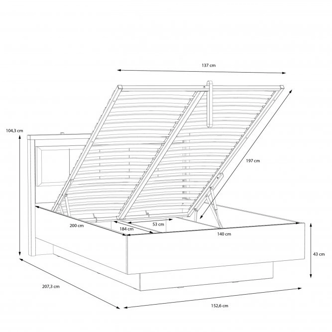 Funkcjonalność to kluczowy atut tego modelu! Łóżko z pojemnikiem pozwala na przechowywanie pościeli, koców i innych niezbędnych rzeczy bez potrzeby zajmowania dodatkowej przestrzeni w pokoju. Podnoszony stelaż zapewnia łatwy dostęp do pojemnika, a solidna konstrukcja wytrzymuje obciążenie do 250 kg.
