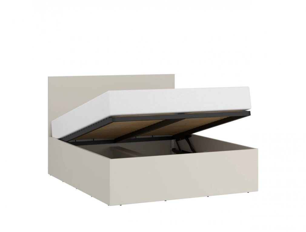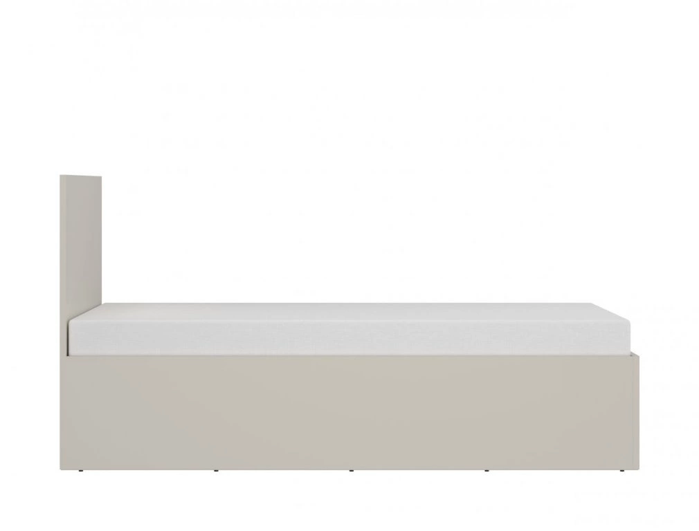 Prosty kształt, klasyczne wezgłowie i stonowana kolorystyka podkreślają nowoczesny charakter mebla. Uniwersalna forma sprawia, że łóżko pasuje zarówno do jasnych, skandynawskich wnętrz, jak i bardziej surowych, loftowych przestrzeni.