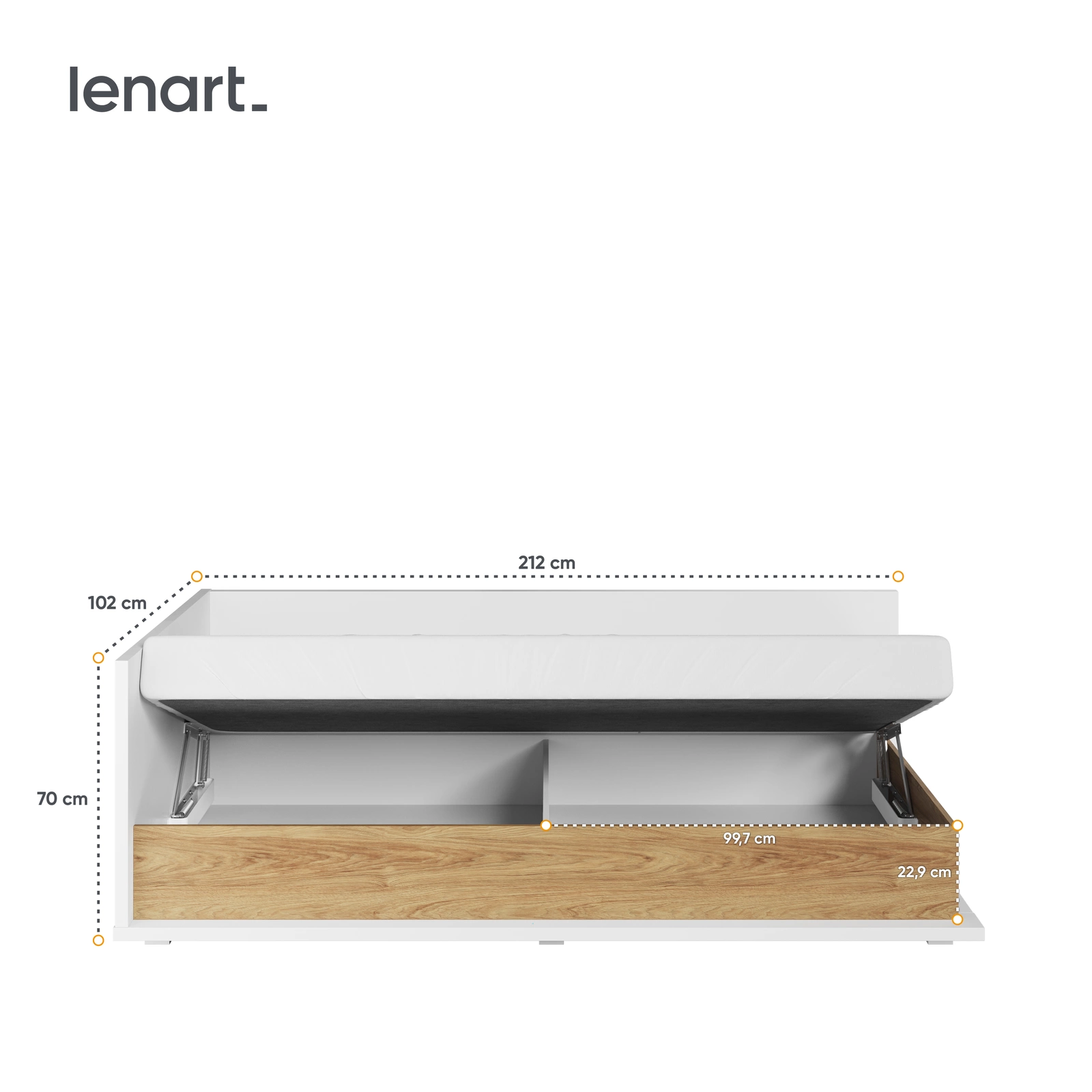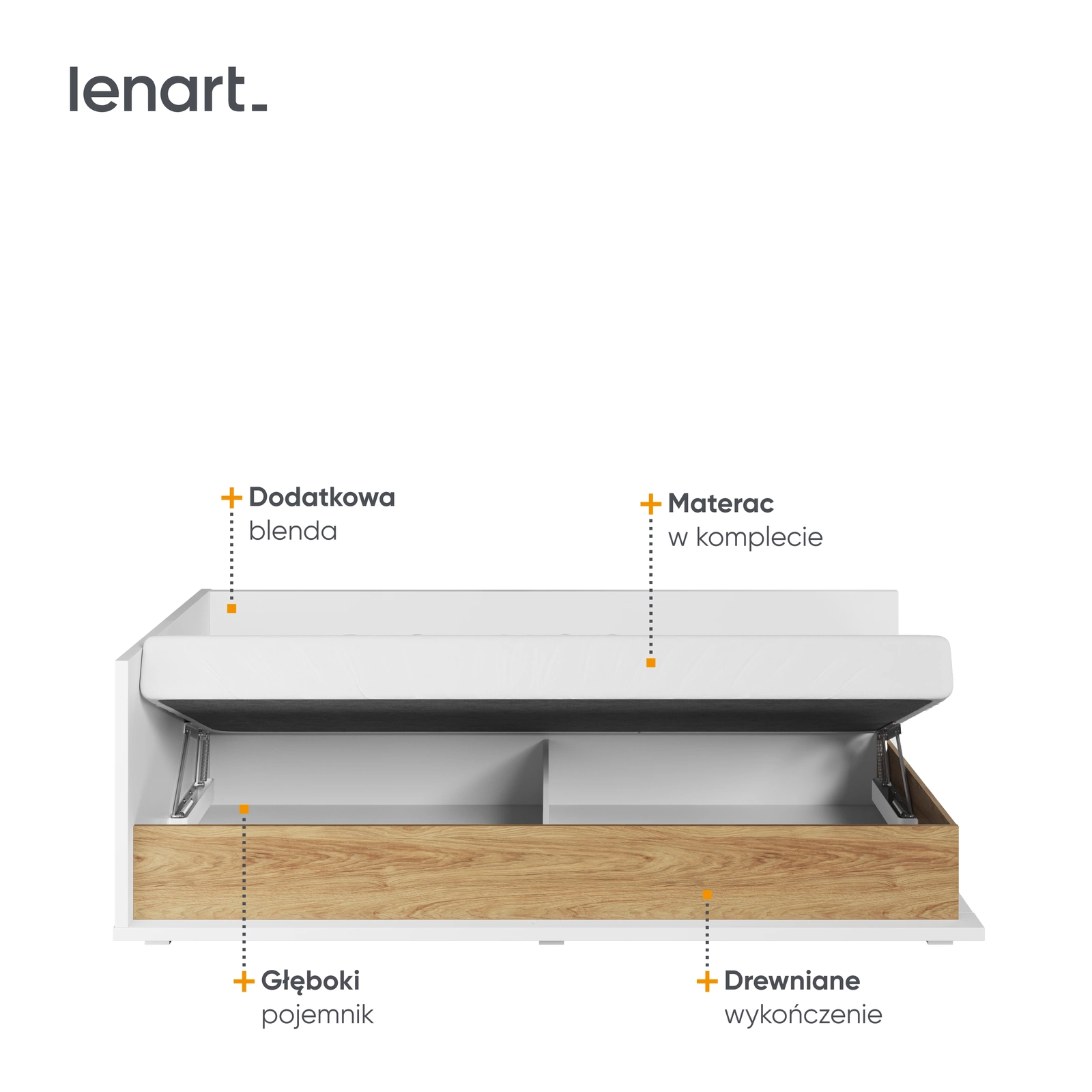 Łóżko z pojemnikiem na pościel do pokoju młodzieżowego 90x200 lewe Simi