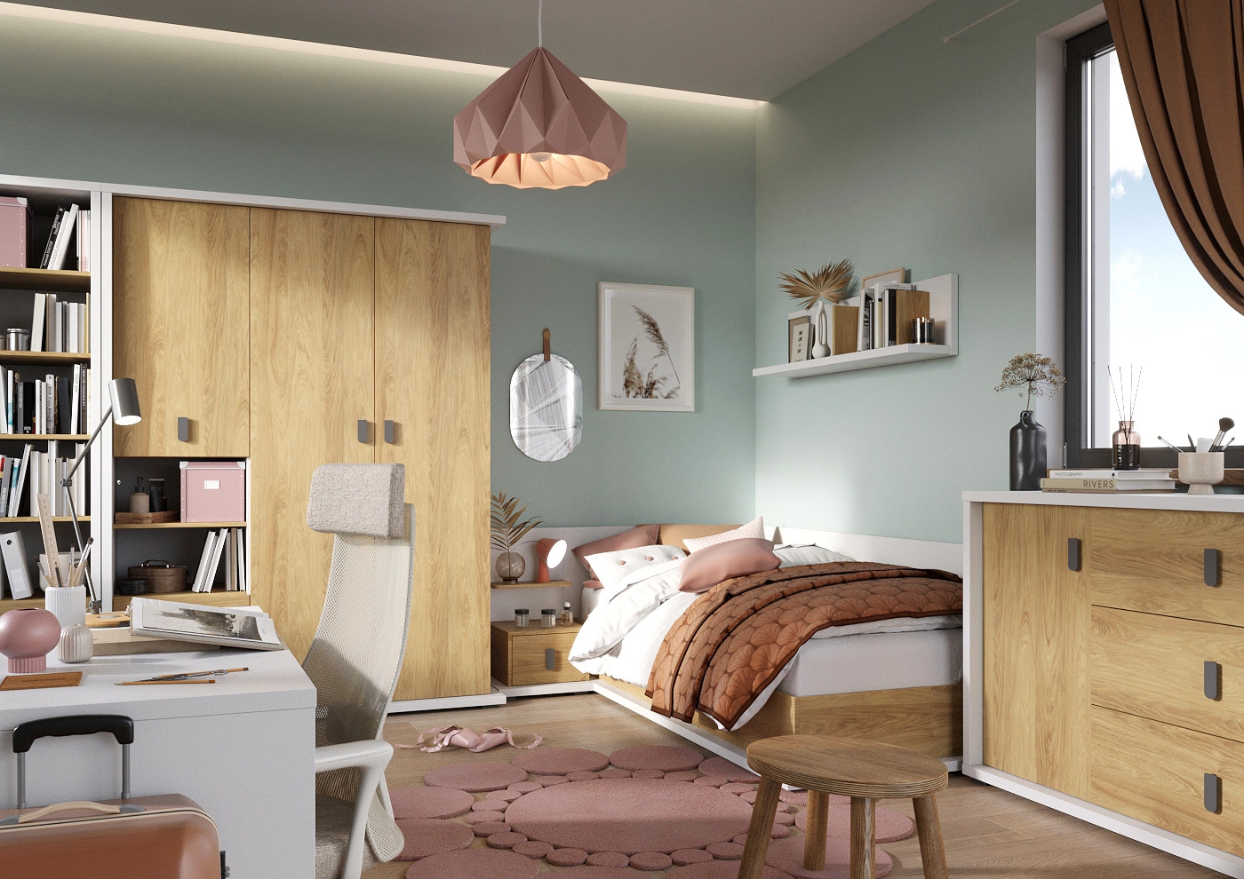 To łóżko łączy w sobie elegancję, wygodę oraz praktyczne rozwiązania – idealne do pokoju młodzieżowego, gościnnego lub niewielkiej sypialni. Jeśli szukasz estetycznego i funkcjonalnego mebla do codziennego użytku, ten model spełni wszystkie Twoje oczekiwania.