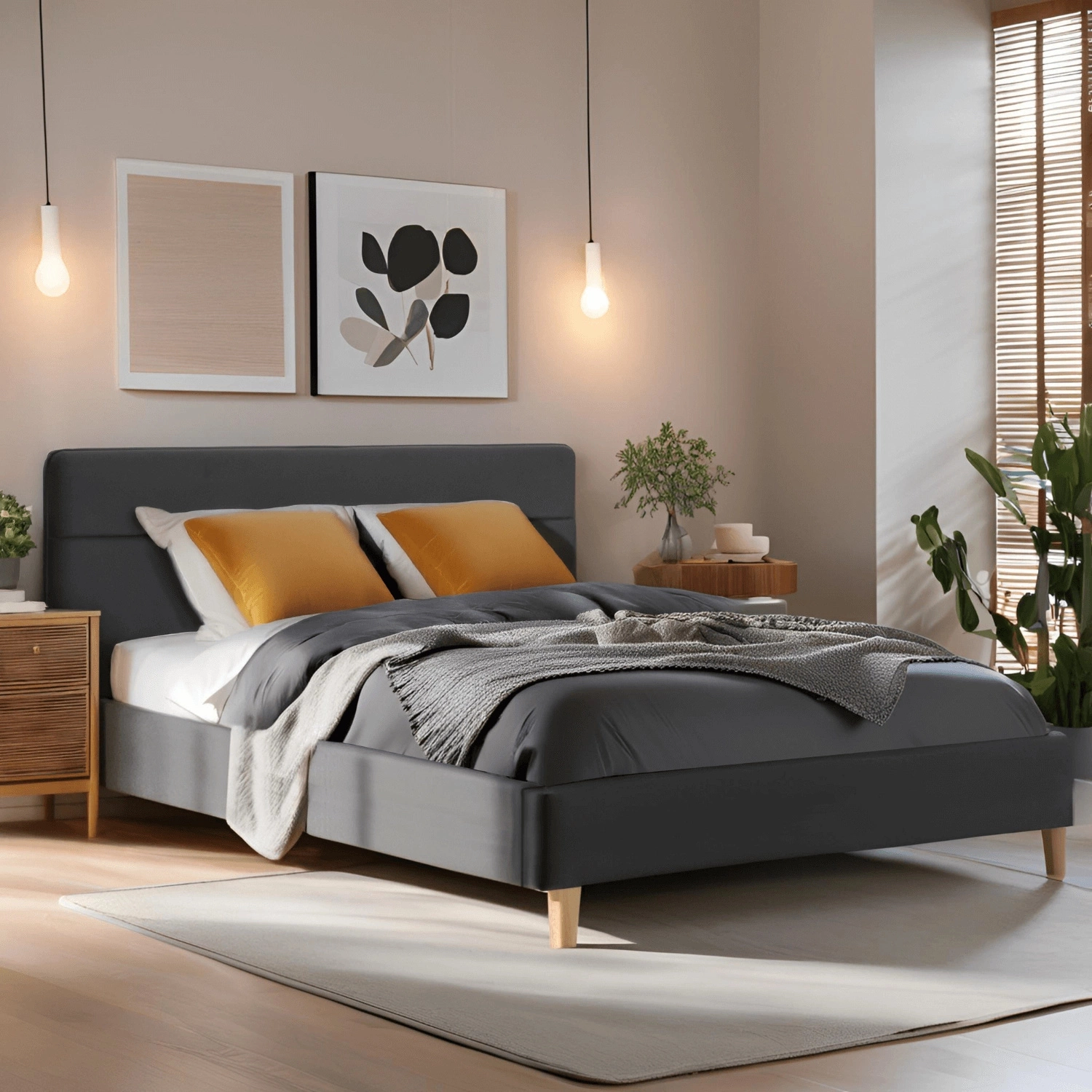 Szara tonacja łóżka pozwala na łatwe dopasowanie do różnych stylów wnętrzarskich, od skandynawskiego po glamour.