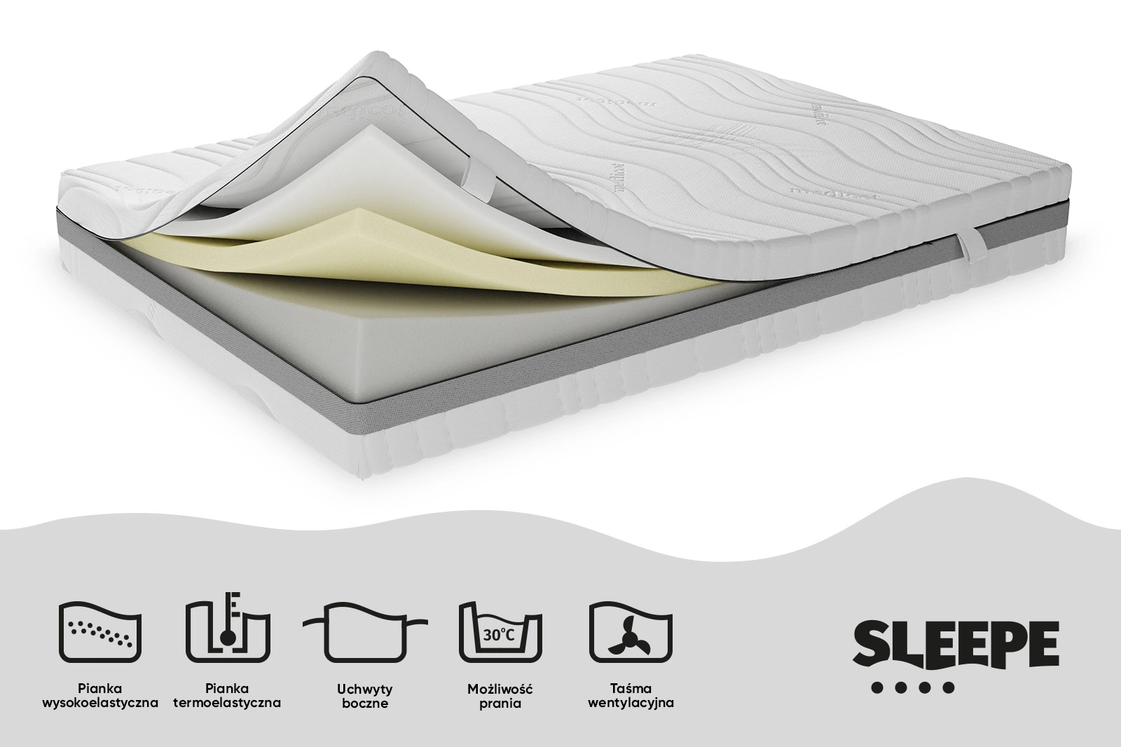 Pierwsza z nich, dzięki otwarto-komórkowej budowie zapewnia doskonałą wentylację materaca, czym gwarantuje utrzymanie wysokiej higieny snu. Dodatkowo zapewnia odpowiednią sprężystość produktu i sprawia, że prezentowany materac do spania cechuje się wydłużoną trwałością.