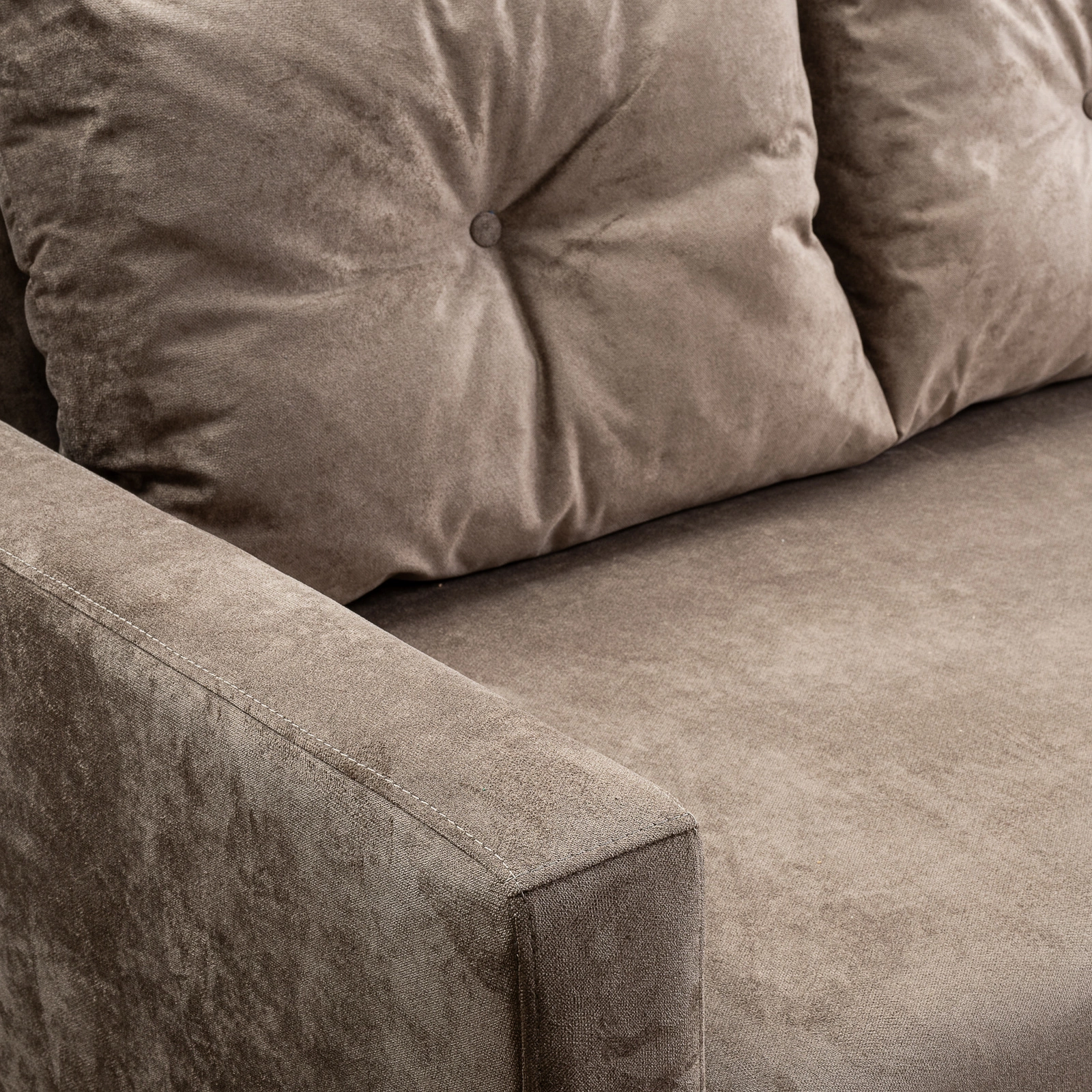 Beżowe obicie narożnika Bert 2 nadaje wnętrzu ciepła i subtelności, jednocześnie podkreślając jego nowoczesny charakter. Dzięki uniwersalnemu kolorowi i kompaktowym wymiarom, ten narożnik świetnie sprawdzi się w małych salonach, dodając im przytulności i funkcjonalności.