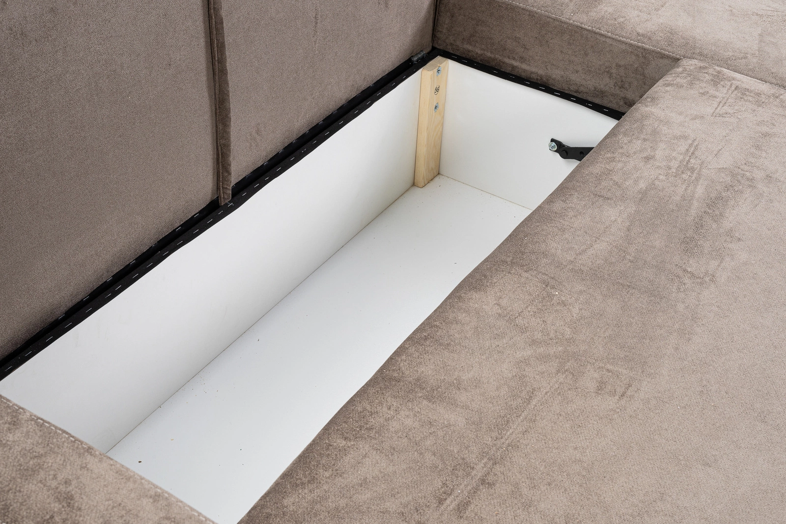 - Rozkładany mechanizm: Wyposażony w automatyczny system, narożnik łatwo zmienia się w przestronne miejsce do spania.