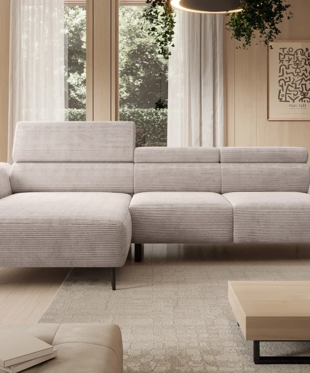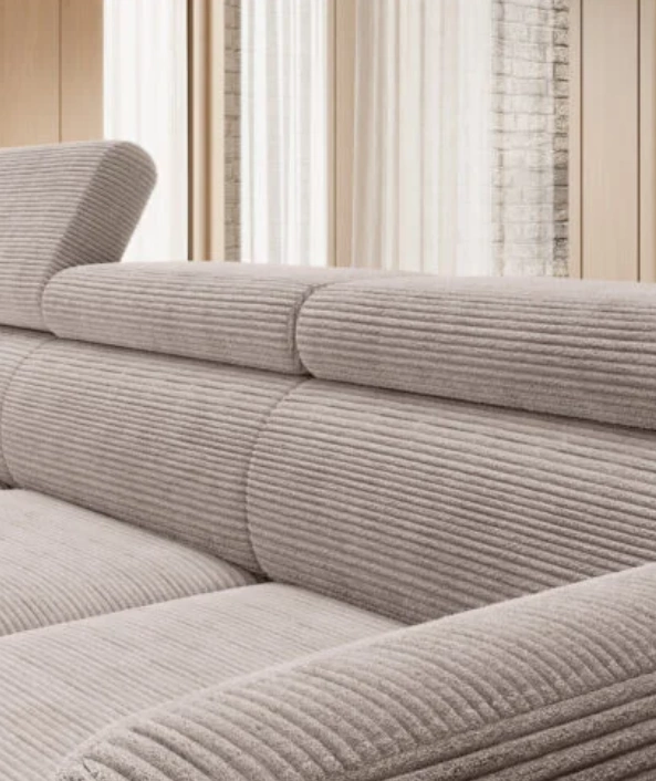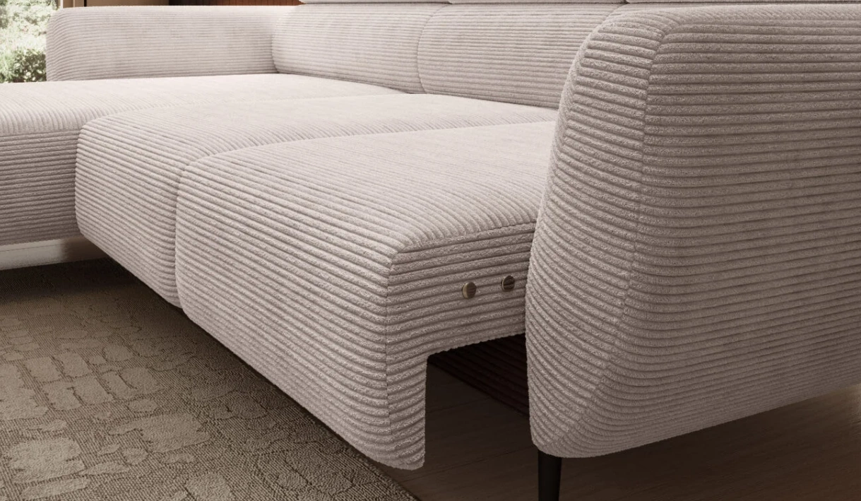 Dodatkowym atutem jest elektrycznie regulowana głębokość siedziska, dzięki której jednym ruchem możesz dostosować narożnik do relaksu w pozycji siedzącej lub półleżącej.