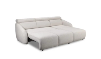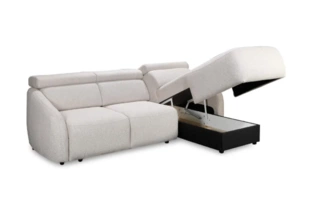 Model wyposażono w funkcję spania Puma Plus, która pozwala w prosty sposób przekształcić narożnik w wygodne łóżko o powierzchni 140 x 210 cm – idealne do codziennego wypoczynku lub okazjonalnego przenocowania gości. Dodatkowo w szezlongu znajduje się pojemny schowek na pościel, co znacznie ułatwia organizację przestrzeni.