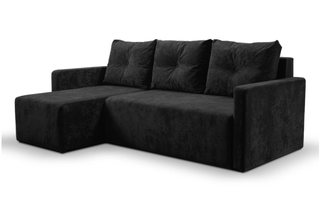 Narożnik nowoczesny do małego salonu rozkładany czarny Bert