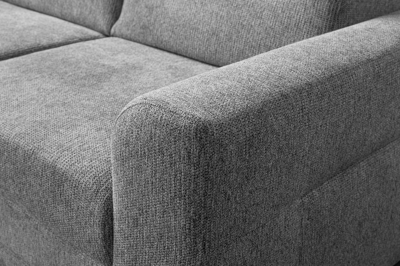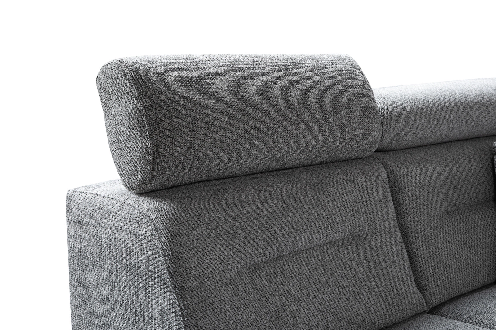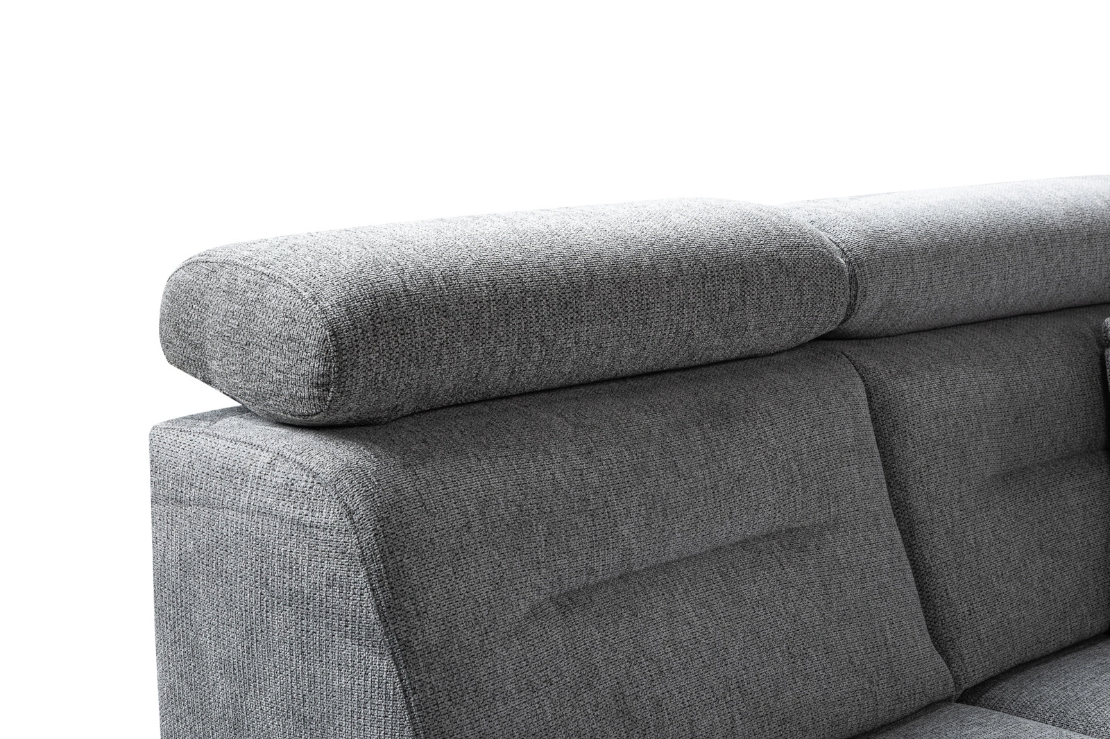 Tkanina welwetowa Aragon 90 charakteryzuje się niezwykłą miękkością i trwałością, co gwarantuje długotrwałe użytkowanie bez utraty jakości. Szary kolor dodaje wnętrzu ciepła i harmonii, doskonale współgrając z różnorodnymi aranżacjami. Eleganckie przeszycia nadają narożnikowi lekkości i wyjątkowego stylu, podkreślając jego nowoczesny design.