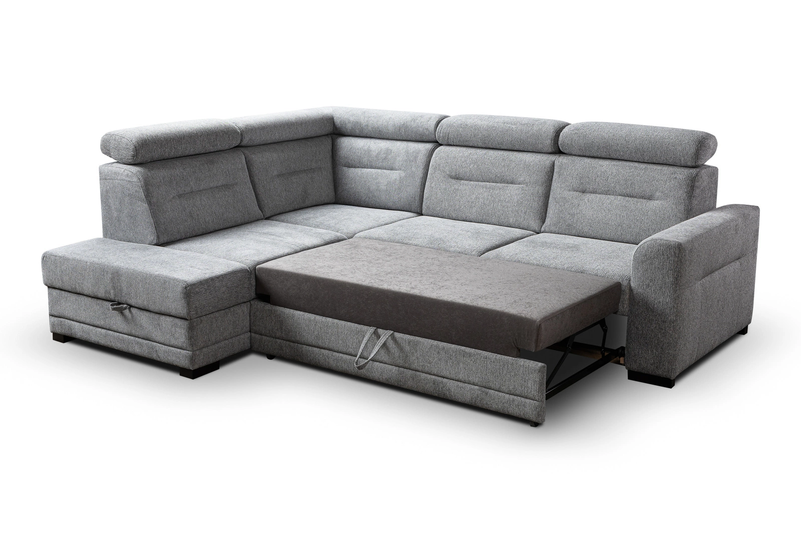 Narożnik Salto został zaprojektowany z myślą o codziennym użytkowaniu. Wyposażony w funkcję spania o wymiarach 130 x 200 cm, umożliwia szybkie przekształcenie go w wygodne łóżko. System rozkładania delfin jest niezwykle prosty i intuicyjny, co pozwala na błyskawiczne przygotowanie miejsca do spania dla Twoich gości.