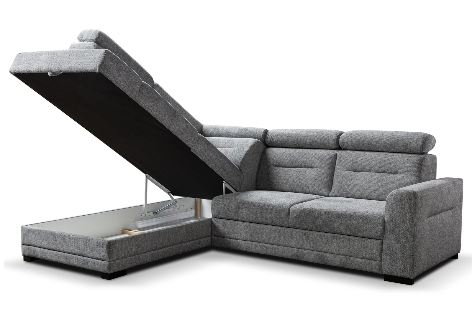 Narożnik Salto posiada również funkcjonalny schowek na pościel, który pozwala na utrzymanie porządku w salonie. To praktyczne rozwiązanie, które docenisz, mając zawsze pod ręką dodatkowe miejsce do przechowywania.