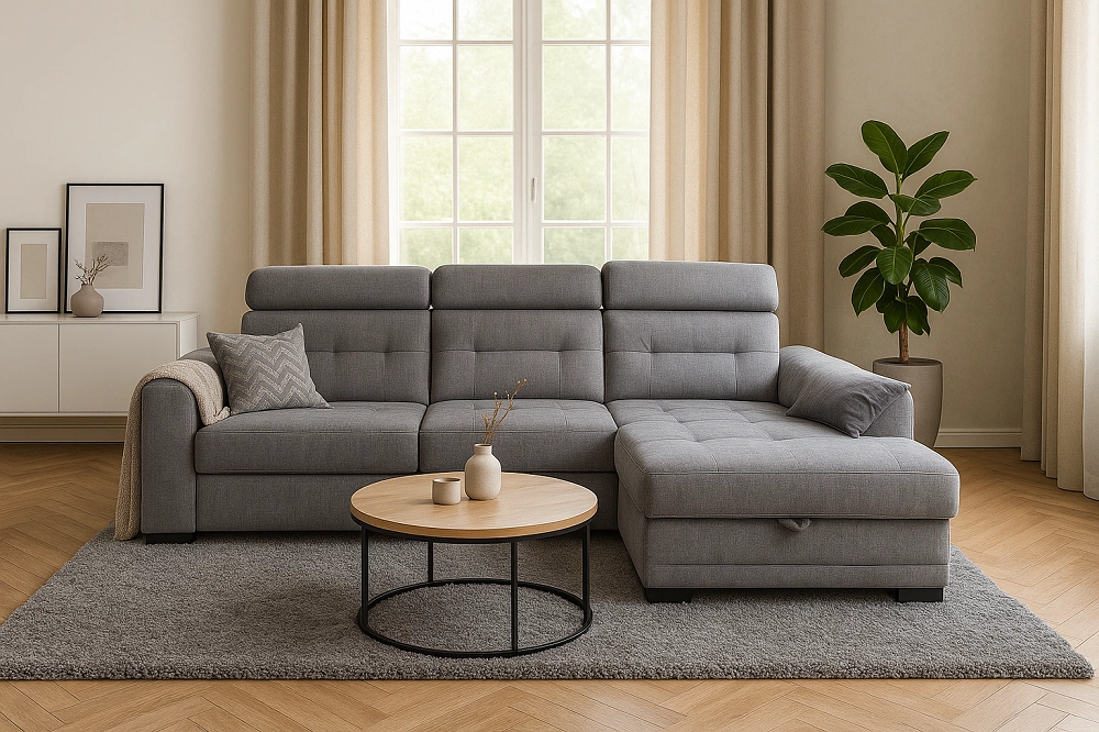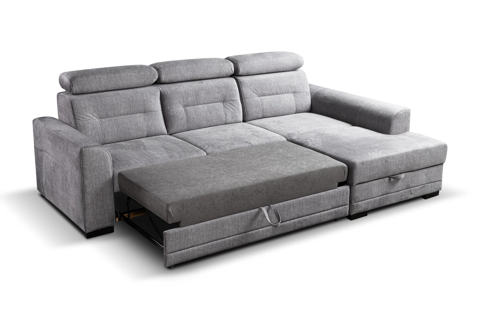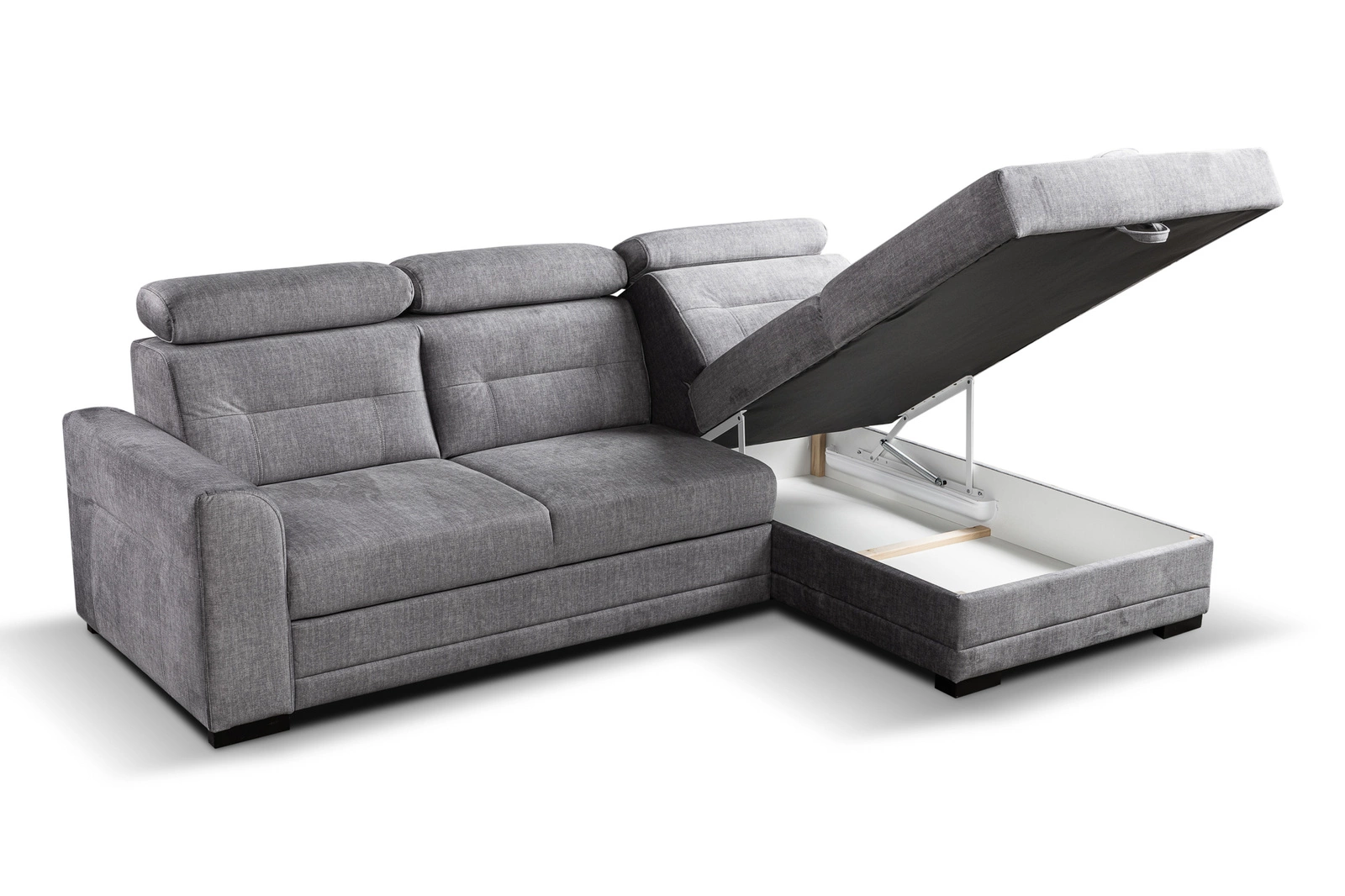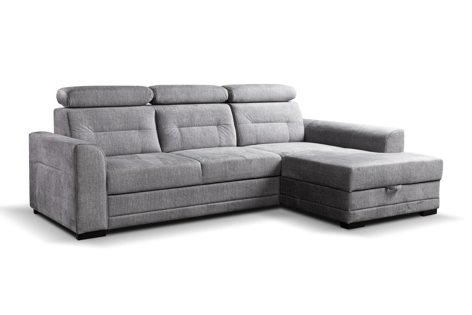 Narożnik szary z funkcją spania i ruchomymi zagłówkami Costa