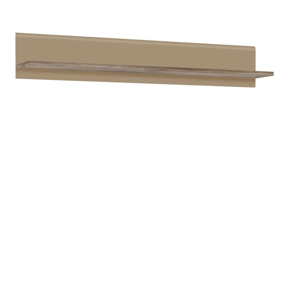 - Półka ścienna Tiziano 145 cm w kolorze Dąb Antyczny i Beżowy Połysk to eleganckie i funkcjonalne uzupełnienie salonu. Idealna na książki, dekoracje lub pamiątki. Stylowe wykończenie pasuje do nowoczesnych i klasycznych wnętrz.