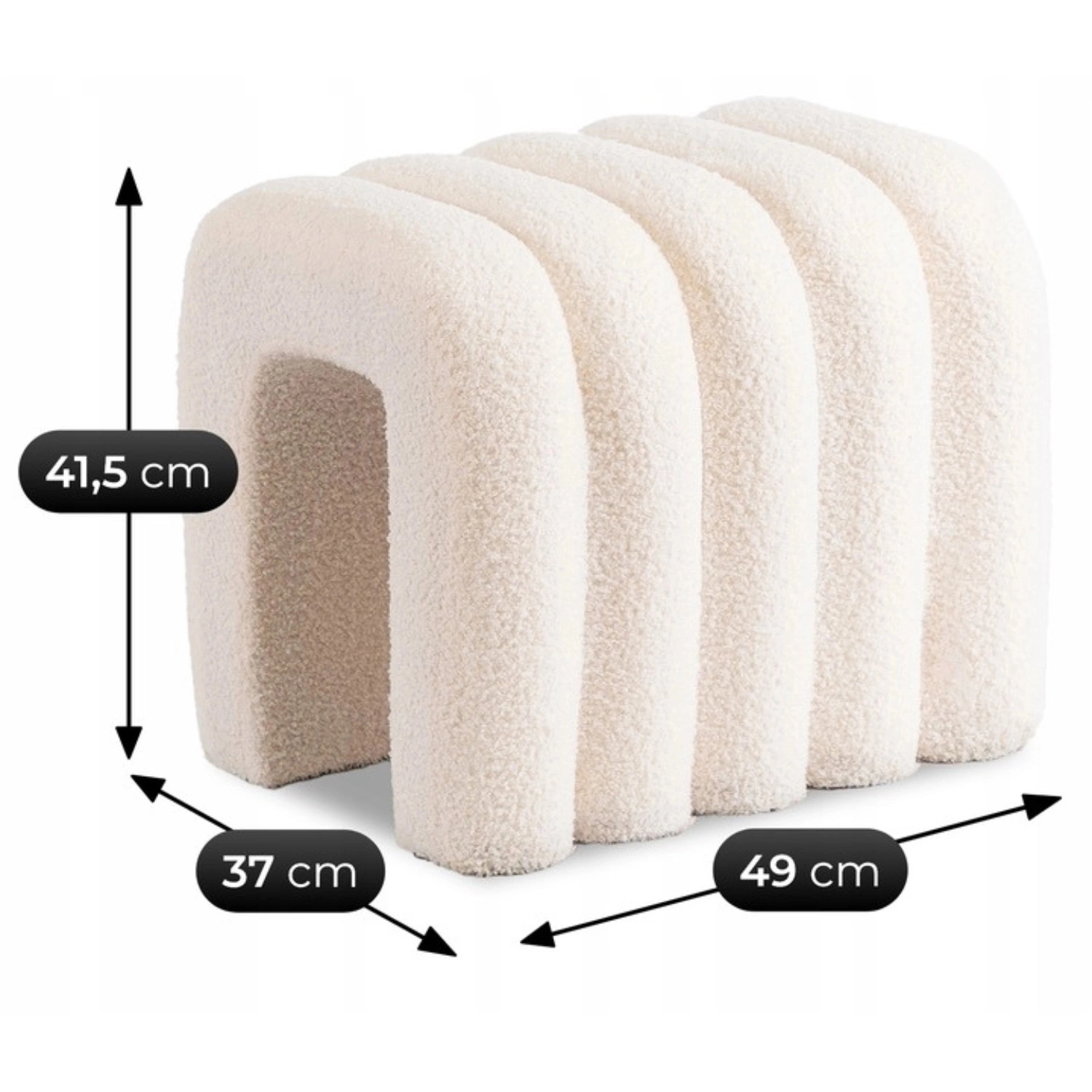 Dzięki kompaktowym wymiarom – wysokość 41,5 cm, szerokość 49 cm i głębokość 37 cm – pufa świetnie sprawdzi się zarówno w większych, jak i mniejszych przestrzeniach. Doskonale pasuje do salonu, przedpokoju, sypialni, a nawet pokoju młodzieżowego. Może pełnić funkcję dodatkowego siedziska, podnóżka lub stylowego akcentu dekoracyjnego.