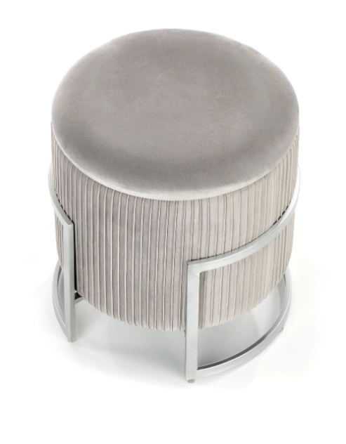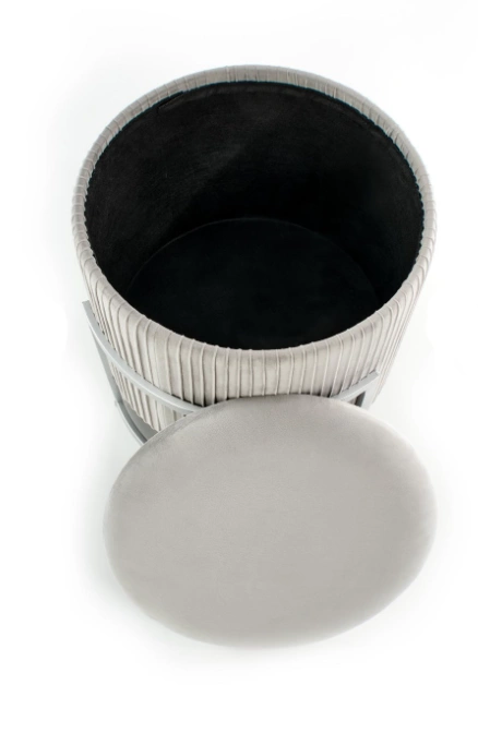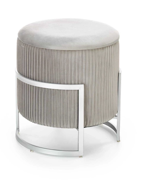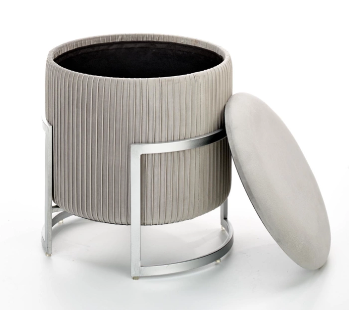 Pufa Cricket to połączenie nowoczesnego designu, luksusowego stylu glamour i wyjątkowej funkcjonalności. Jej aksamitna tapicerka w popielatym odcieniu, w zestawieniu ze srebrnym metalowym stelażem, nadaje wnętrzu elegancki i ponadczasowy charakter.