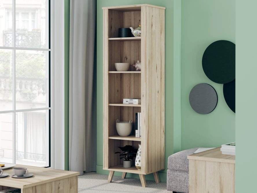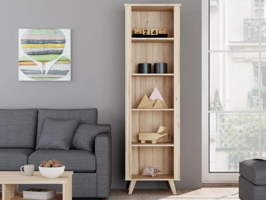Wyróżnia się ponadczasową formą i starannie dobranymi wykończeniami. Został zaprojektowany z myślą o funkcjonalnym zagospodarowaniu przestrzeni – pięć otwartych półek pozwala na wygodne przechowywanie książek, dokumentów, dekoracji lub roślin, które ożywią każde pomieszczenie.