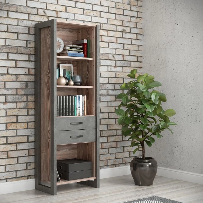 - Nowoczesny regał z kolekcji Note łączy funkcjonalność z wyjątkowym designem. Wyposażony w półki oraz praktyczne szuflady, pozwala na wygodne przechowywanie. Połączenie betonu i sosny picea nadaje mu industrialny, a zarazem przytulny charakter.